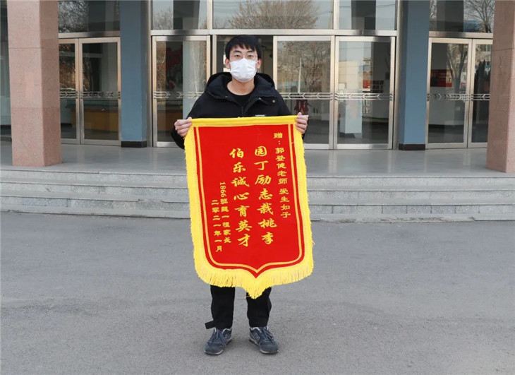 近日,我校高三年级1866班魏一恒同学的家长为我校送来锦旗两面绣有“园丁励志栽桃李,伯乐诚心育英才”、“用责任与担当诠释无私奉献甘为人梯”的锦旗。