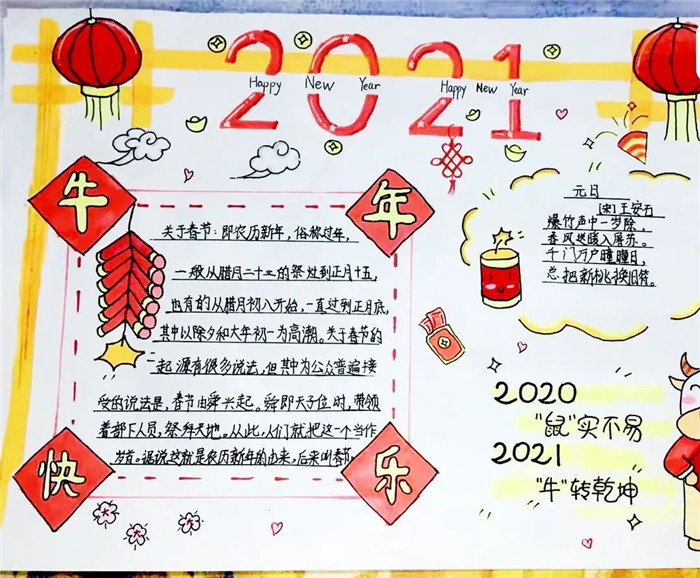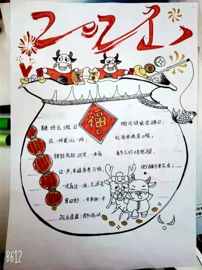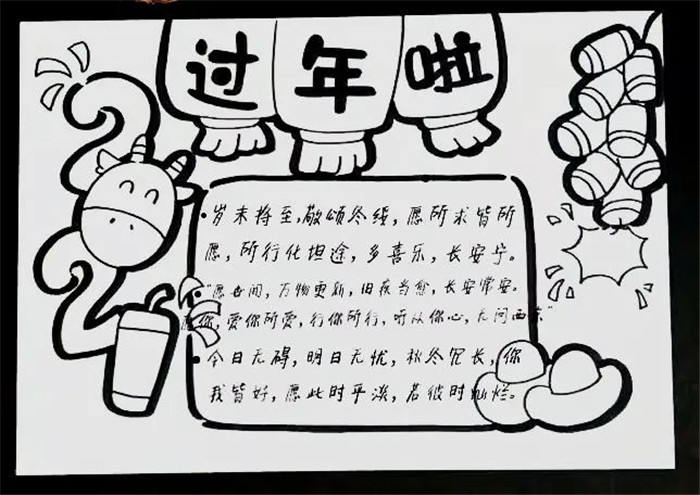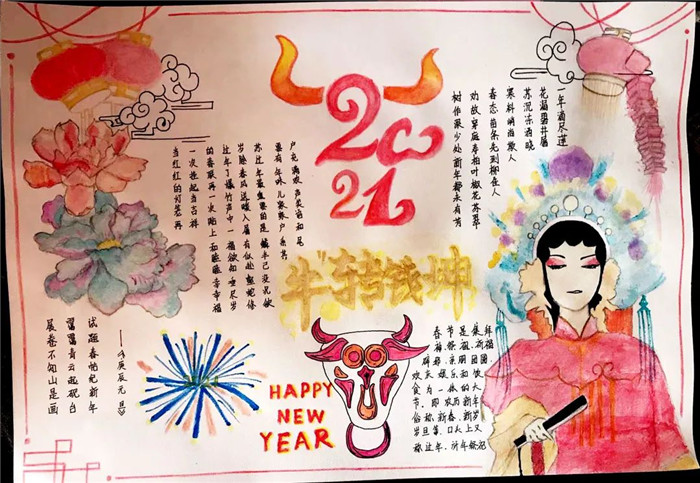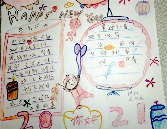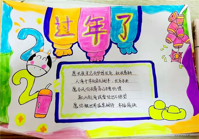 农历新年马上就要来临了,回首过去的一年,充实无憾;展望新的一年,充满期待。同学们用手中的画笔描绘出心中最美的祝福,庆祝新年的到来,企盼大家新年的愿望都能实现。