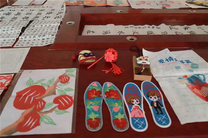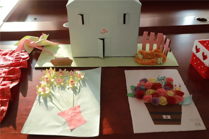 以年级为单位,向三个年级征集女教职工书、画、刺绣、手工艺品等作品并进行展示,展示最美女教职工之风采!