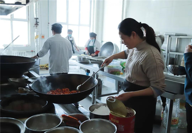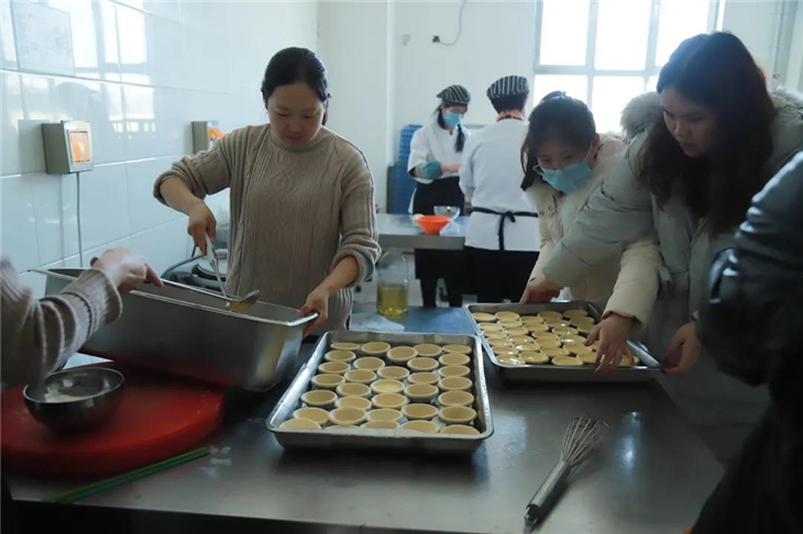 学校食堂准备了各种食材,女教职工展示花样甜点、传统面点制作、或者跟大厨学习制作一道菜品进行展示。让大家可以在美食中获得温暖,在特别的日子秀一下幸福。