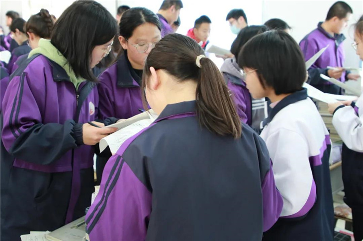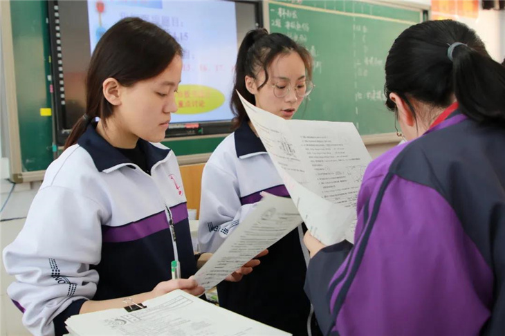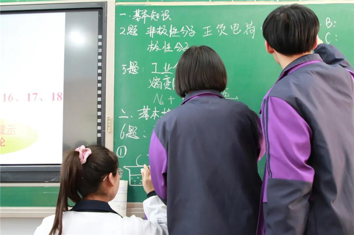 随后,宋老师提出问题并引导学生们开展小组讨论,学生们积极探讨问题,课堂的学习氛围浓烈。讨论结束后,小组派出代表在黑板上写出本组的答案。