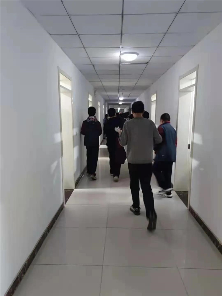 早晨5:30响铃后,学生们迅速起床,整理床铺,洗漱完毕。疏散铃声一响,同学们行动快速,下楼无拥挤,无推搡,迅速有序的撤离了宿舍楼。