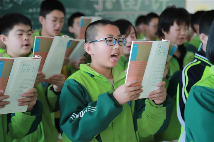 学子声声颂晚霞。