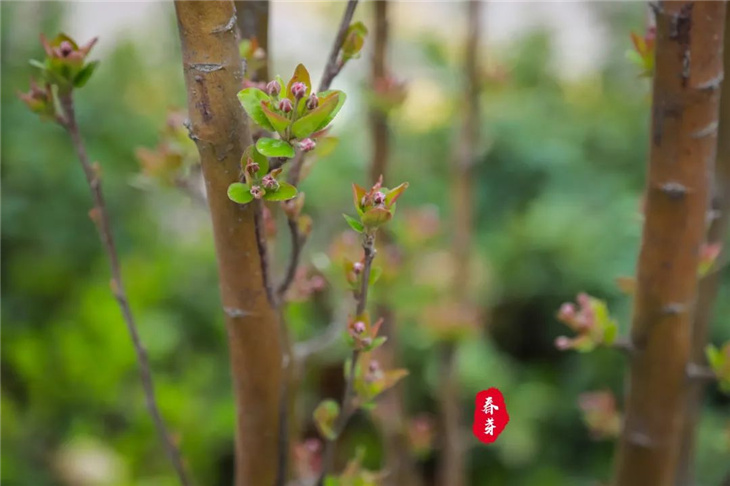 树木抽出了新芽,绿得那么清香,那么鲜嫩,那么可爱,它无声地向我们传递春天的信息。在那甘甜的春雨滋润下,叶芽渐渐长成嫩绿的叶片,叶片绿得像翡绿似的,一阵春风吹过,无数的小叶片动起来,有一种说不出的美~