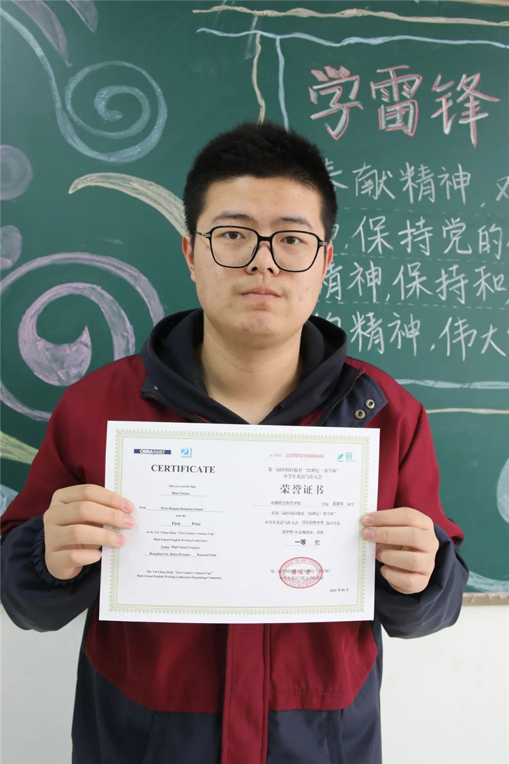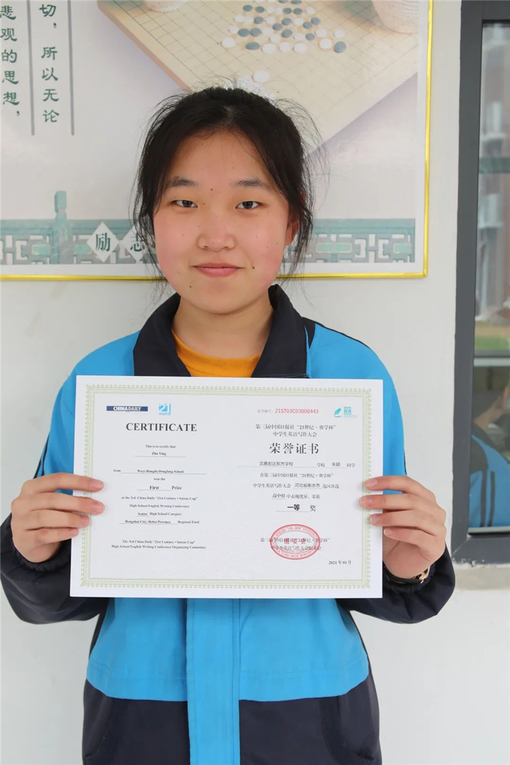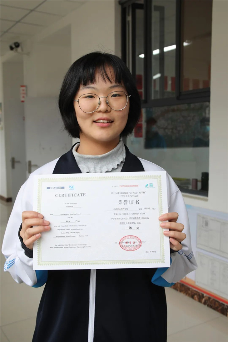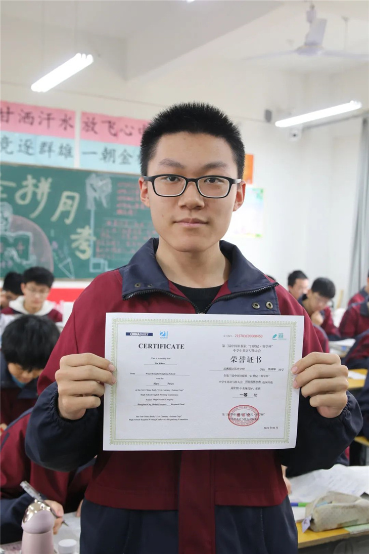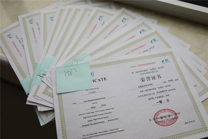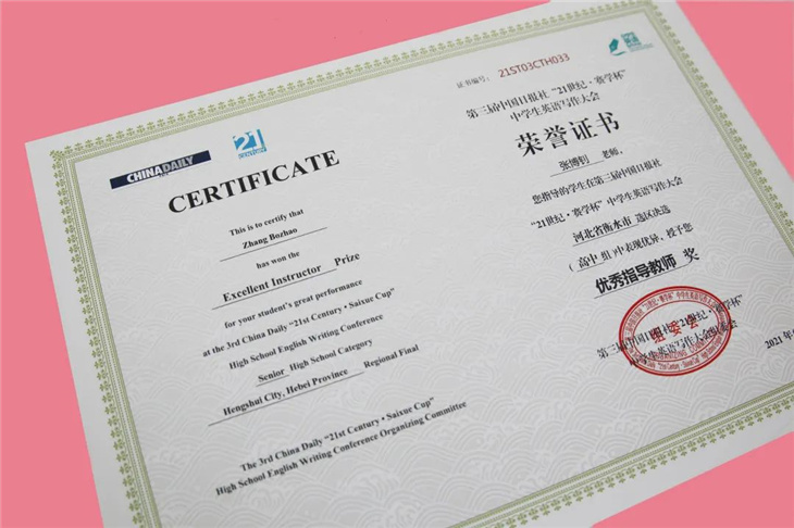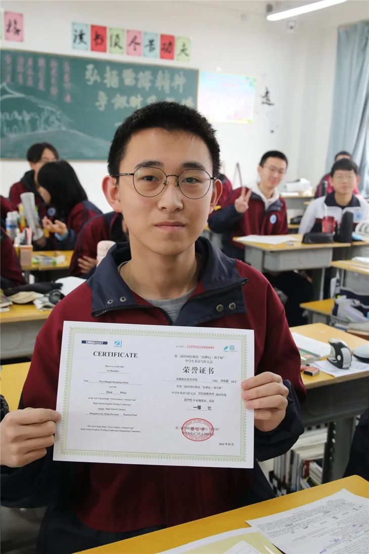 据悉,第三届中国日报社“21世纪·赛学杯”中学生英语写作大会作为“21世纪杯”全国英语演讲比赛选拔活动之一,是面向全国中学生举办的英语演讲主题写作选拔展示活动。