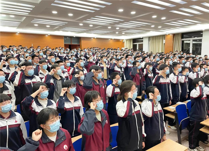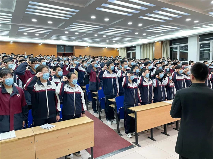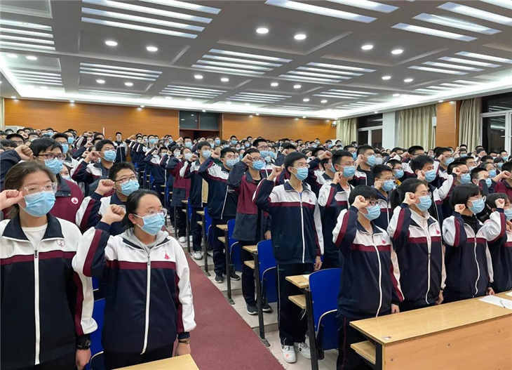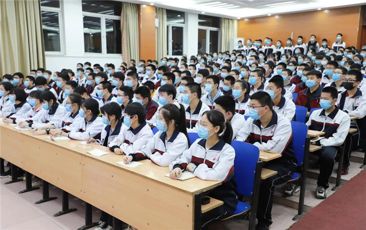 为让高一学子早日明确学习目标,树立理想信念,共同奋进,近日,我校高一年级召开冲刺名校励志报告会。高一年级主任吴少杰,级部主任马永达、郭梦杰及部分高一年级师生齐聚报告厅,共同参加本次会议。