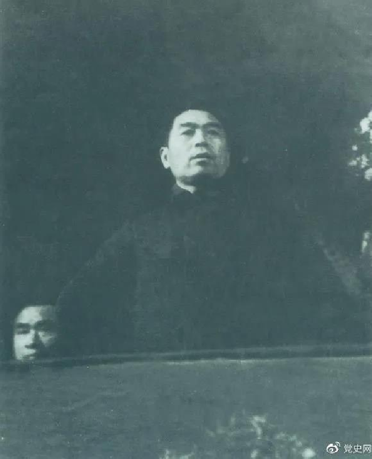 图为周恩来在中国共产党第七次全国代表大会上发言。
