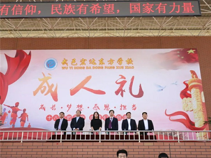 4月30日,春意盎然的校园中,武邑宏达东方学校高二年级学子和众多家长代表汇集操场,参加了隆重的成人礼仪式。与会领导和嘉宾有武邑中学副校长金耀辉,特邀嘉宾张显娟女士,高二年级主任马利辉同志,高一年级主任葛智同志,高二年级程龙主任,高二年级叶子举主任。