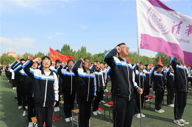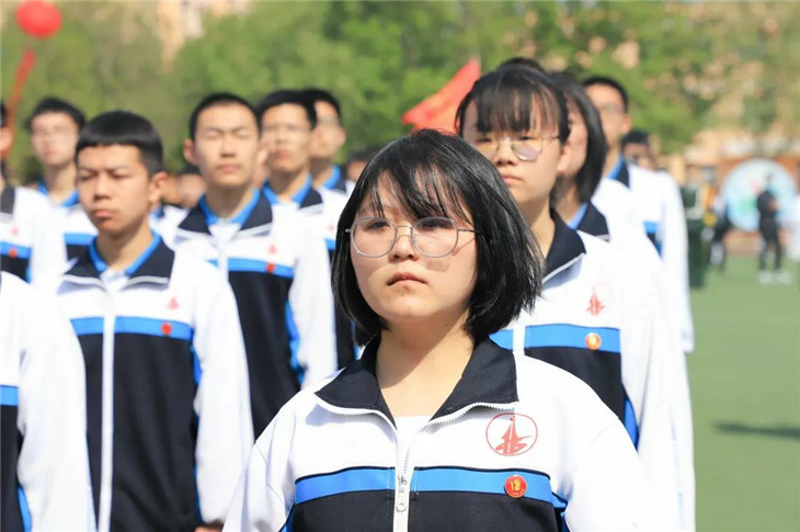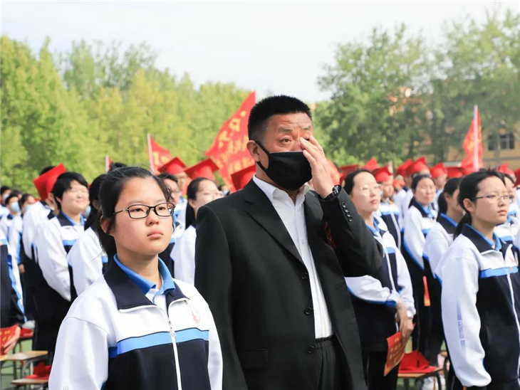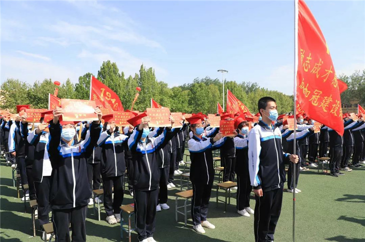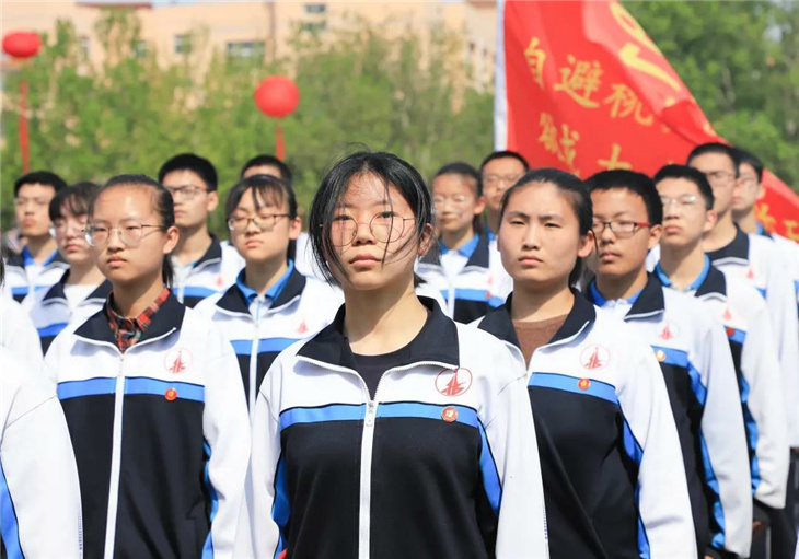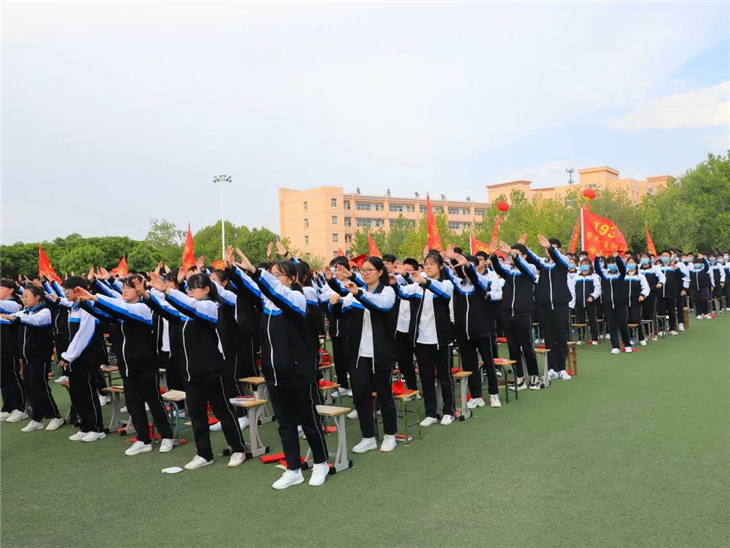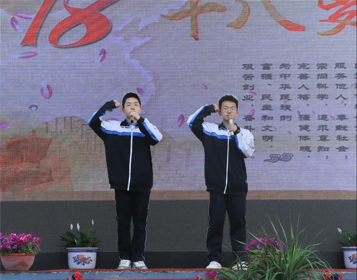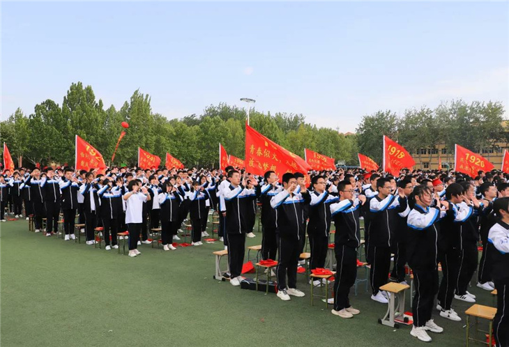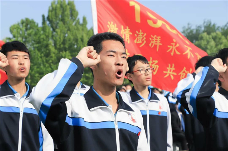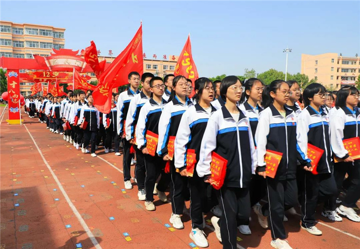 在副校长刘玉香、副校长高智勇、政教处主任张双柱、政教处副主任魏红胜、教务处副主任韩连仲、教务处副主任曹月峰、教务处副主任崔井旺,高一、高二、高三年级教学主任,家长代表王翠杰女士,全体高二老师及远道而来的家长的共同见证下,高二学子迎接了这一场独属于自己的青春盛典,向世界大声地宣誓——青春拼搏,未来,我们开拓!