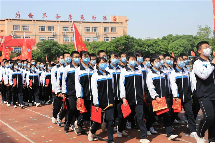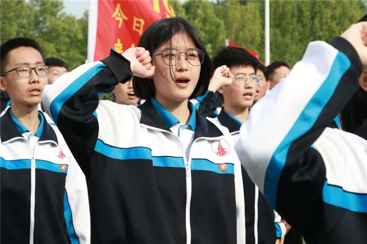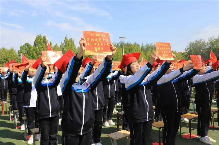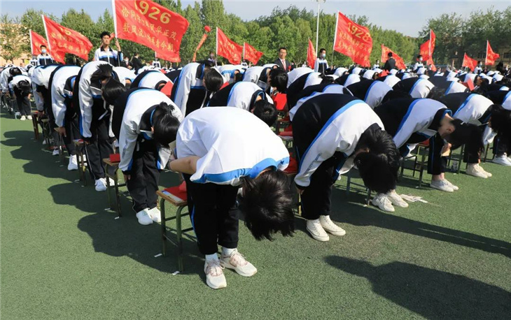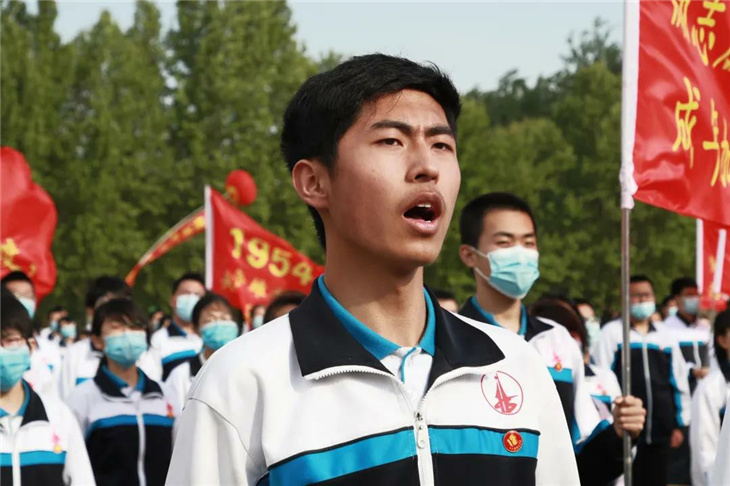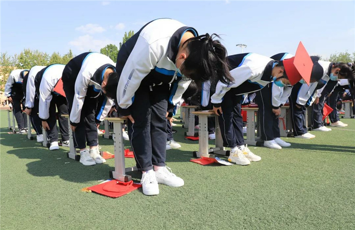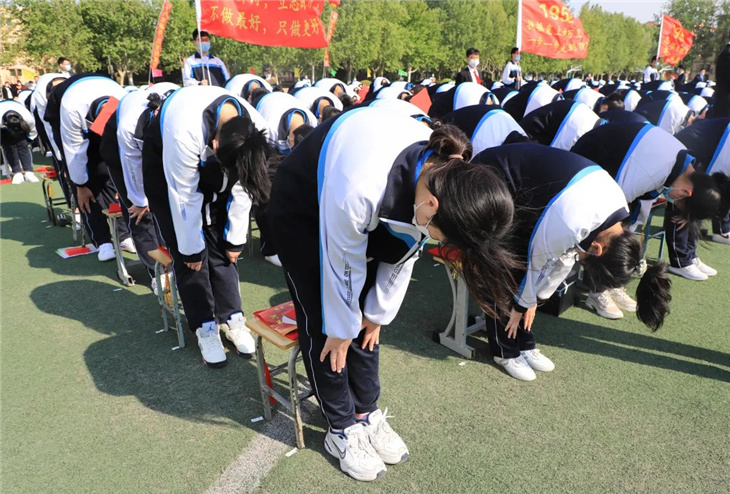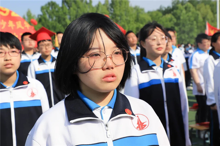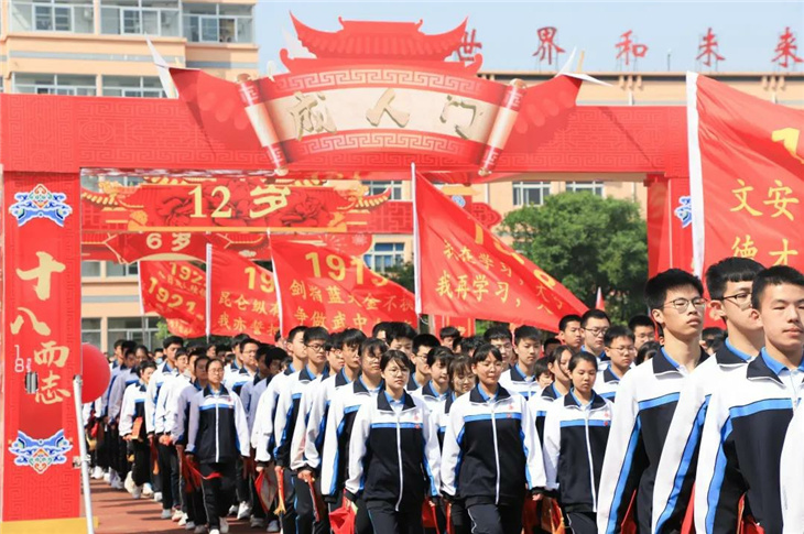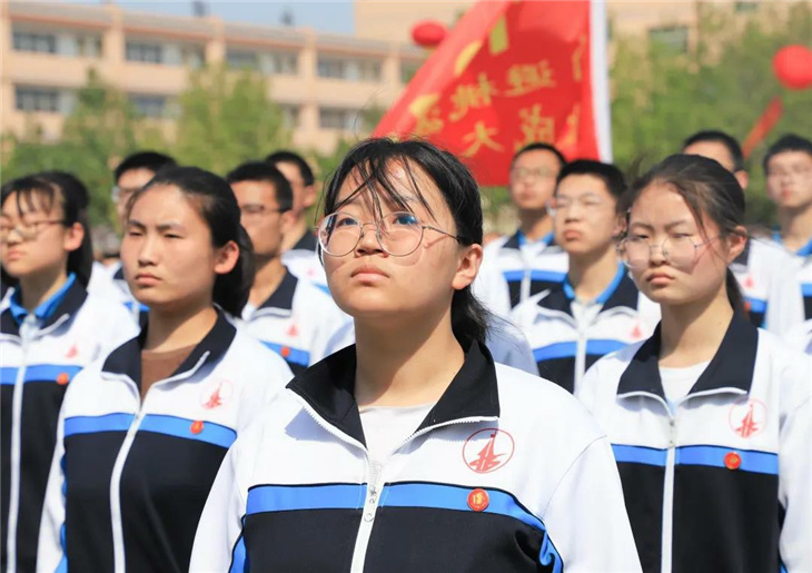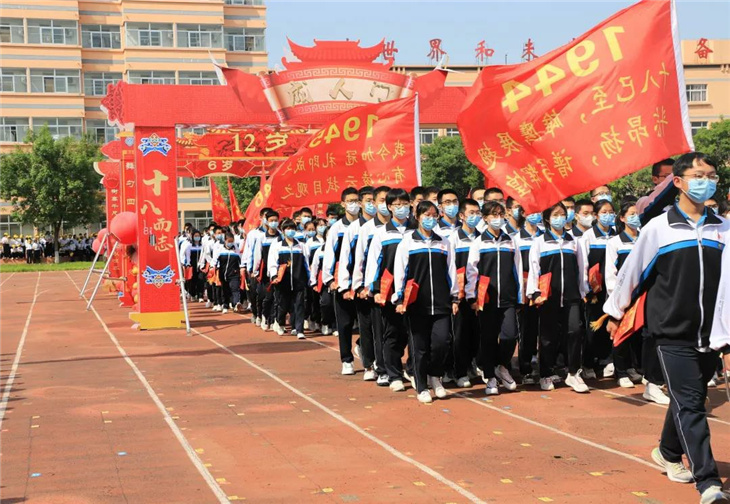 在副校长刘玉香、副校长高智勇、政教处主任张双柱、政教处副主任魏红胜、教务处副主任韩连仲、教务处副主任曹月峰、教务处副主任崔井旺,高一、高二、高三年级教学主任,家长代表王翠杰女士,全体高二老师及远道而来的家长的共同见证下,高二学子迎接了这一场独属于自己的青春盛典,向世界大声地宣誓——青春拼搏,未来,我们开拓!