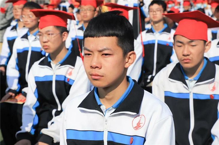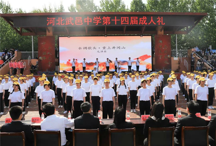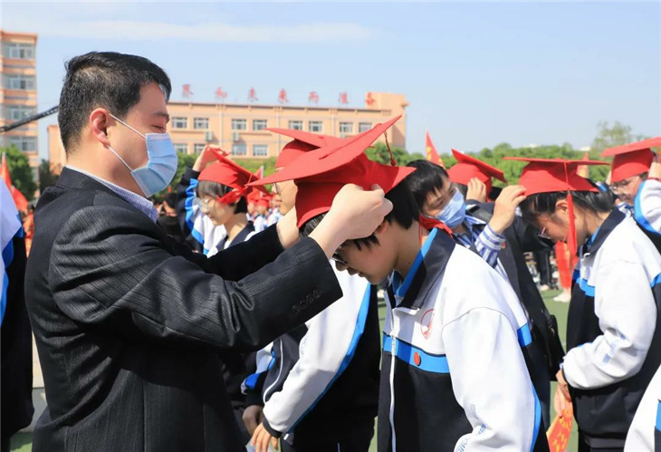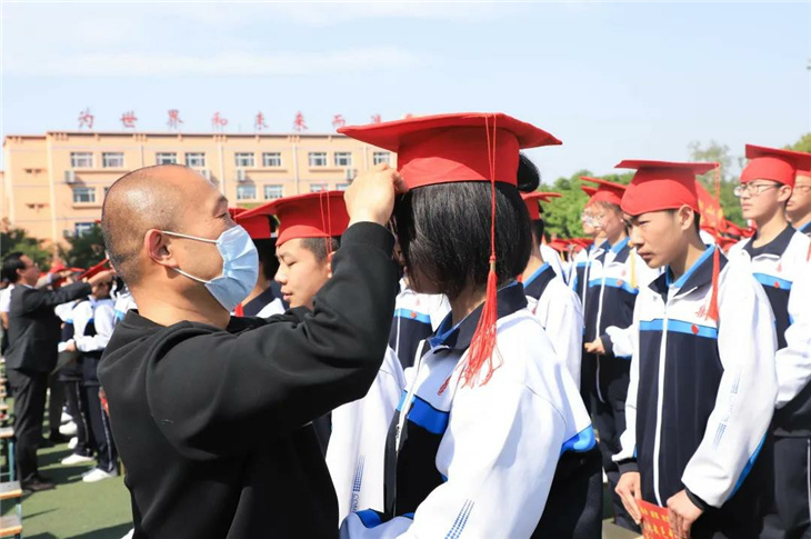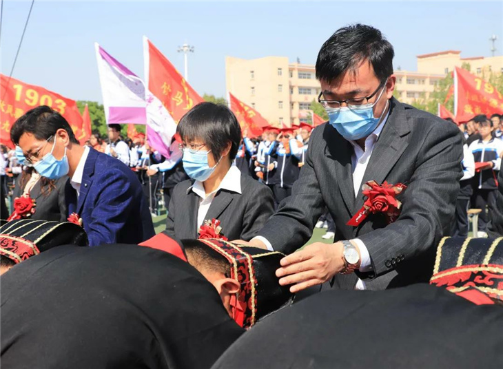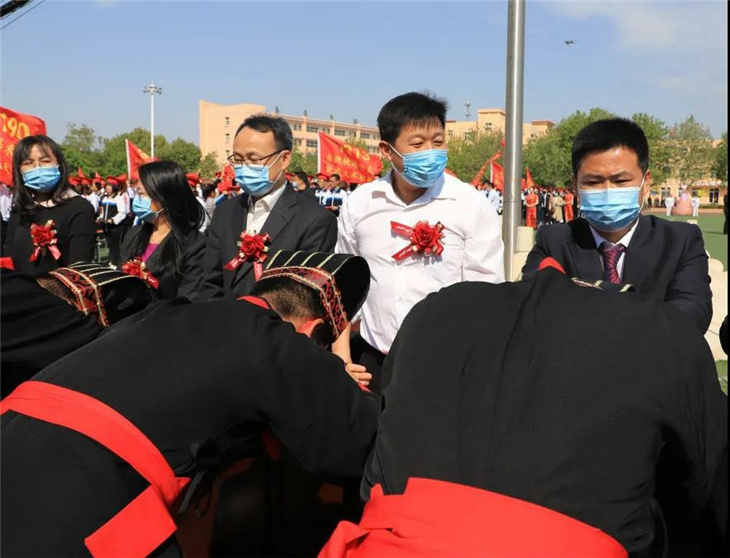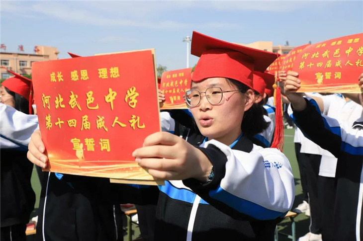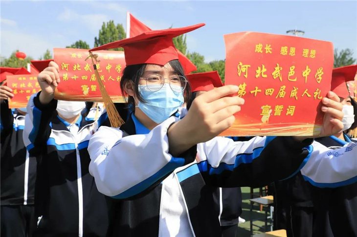 行冠礼,由校领导和家长代表为同学们加冠、及笄,佩戴成人纪念章。此时此刻,冠礼不仅是一种仪式,更是我们宣告着——未来,由我们主宰!
