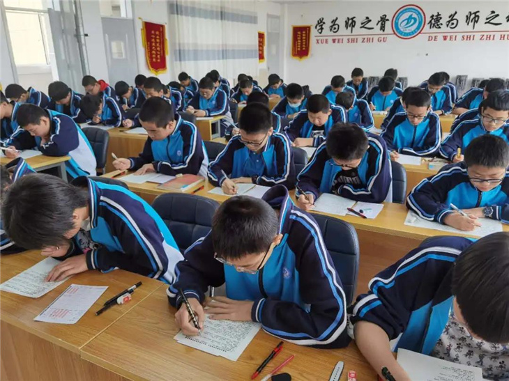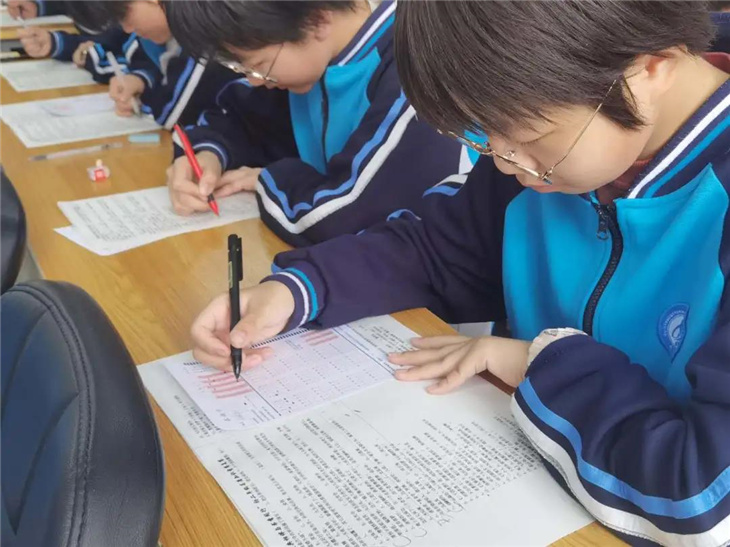 同学们沉着冷静,胸有成竹,有的思如泉涌,下笔果断;有的反复斟酌,下笔谨慎。他们认真仔细,努力地将自己平时的阅读积累显现出来。