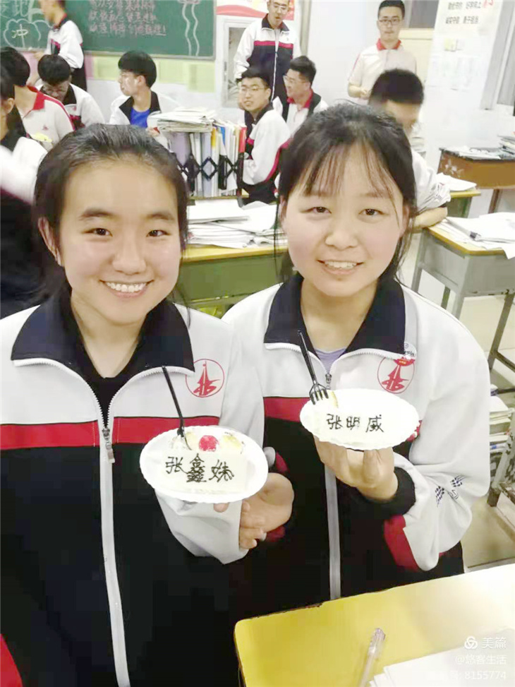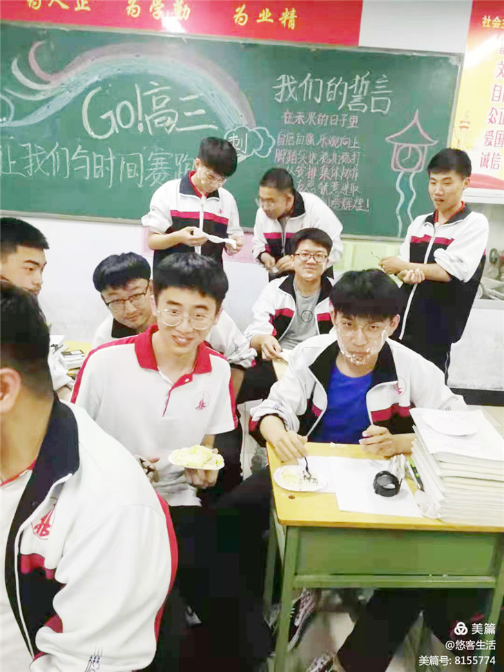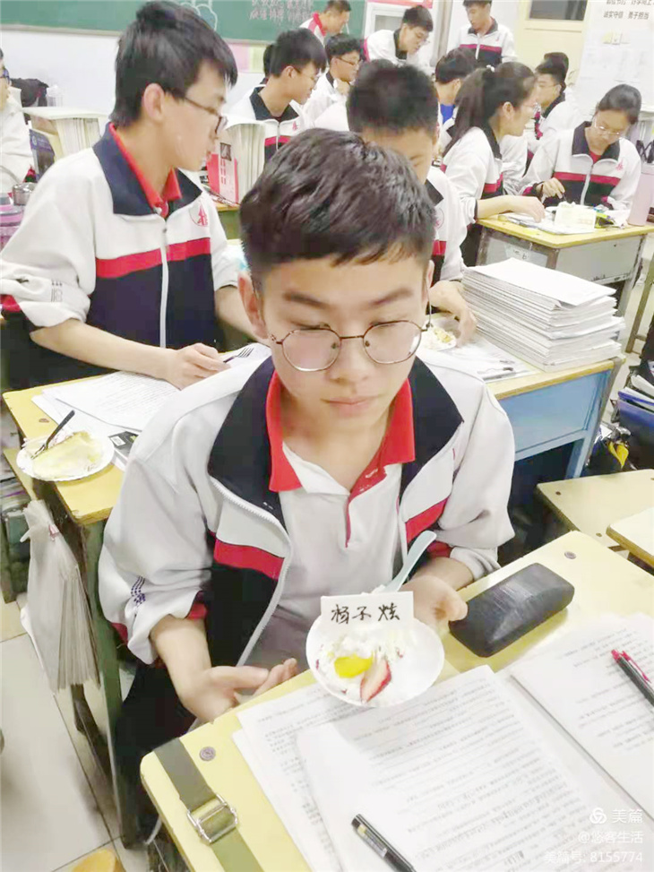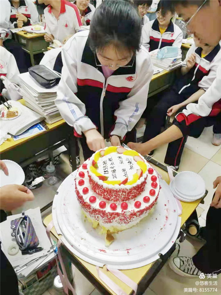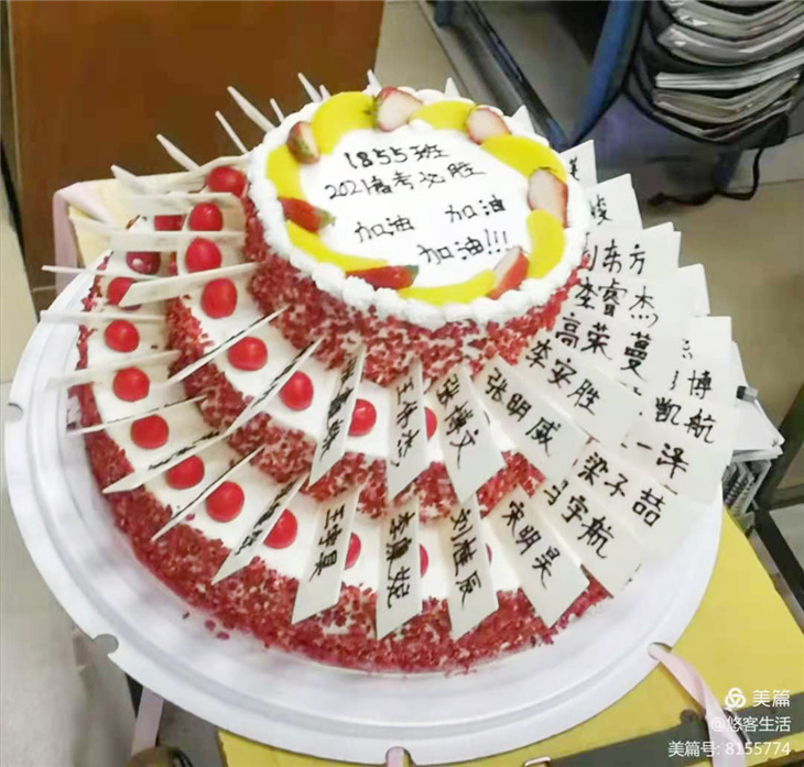 一块蛋糕一个学生名字,簇拥成1855这个昂扬向上的青春班集体。