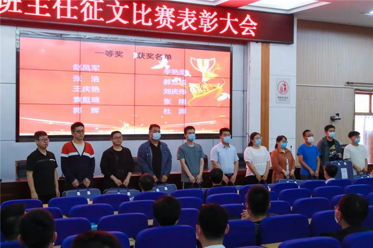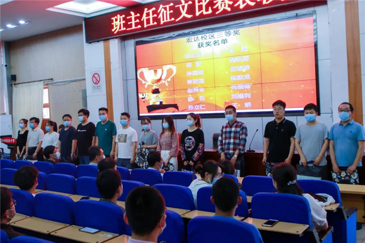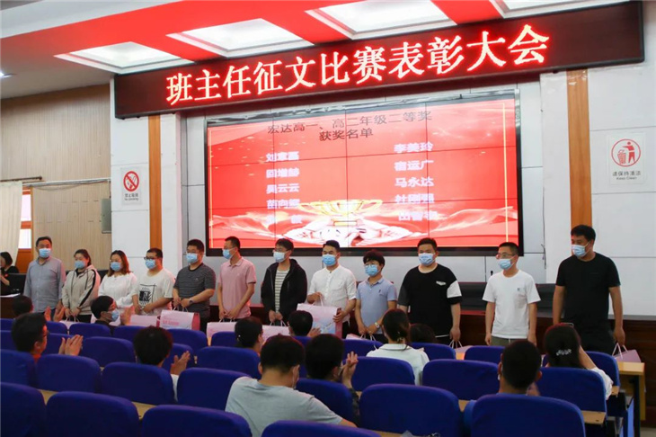 为揭晓班主任征文比赛结果,我校于5月19日在宏达报告厅举行“班主任征文比赛表彰大会”,副校长金耀辉,政教处主任张双柱,高一年级主任吴少杰、刘嫦妍,高二年级主任杜永生、贾新亮以及各年级教学干部,获奖班主任参加了此次活动。