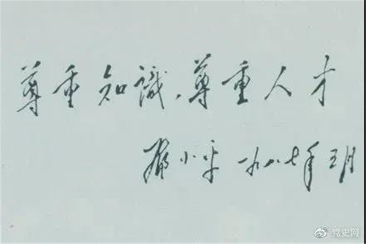 邓小平1987年5月的题词:尊重知识,尊重人才。