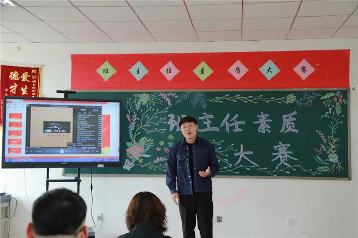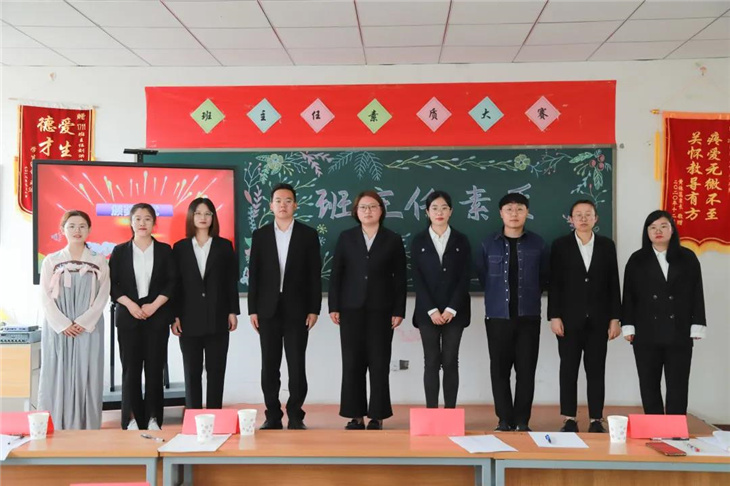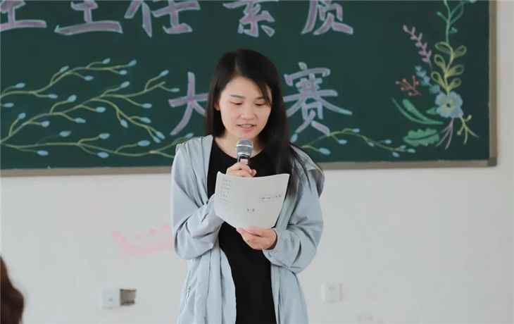 九名实习班主任全员参赛,比赛由初一年级教师董晓猛主持。为了保证为保证比赛的公平、公正,我校副校长赵晓艳、初一年级主任吴冠静、主任助理崔建强、赵晓梅及部分优秀班主任担任评委,进行认真评判。