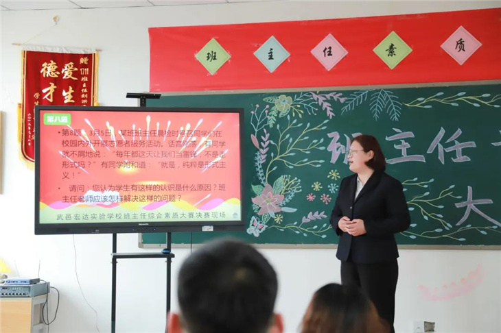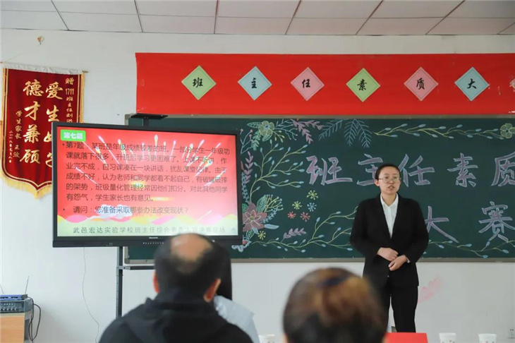 班主任是班级工作的组织者,是班级建设的指导者,更是学生健康成长的引领者和学校德育工作的主力军。为检验实习班主任的工作成绩,全面提升实习班主任的专业水平、个人素养及管理能力,真正培养建设一支强有力的班主任队伍,宏达实验学校于5月23日上午,在初一年级会议室举办了2020-2021学年第一期实习班主任素质比赛。