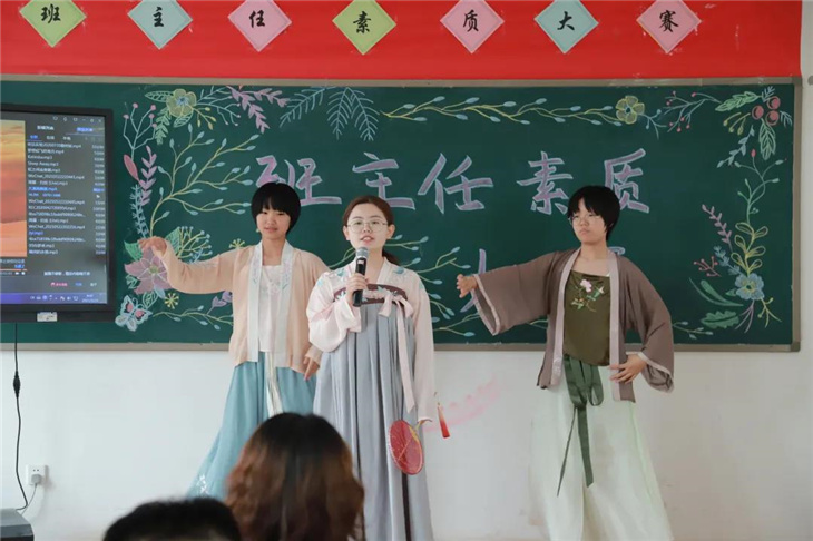本次比赛共有三个环节组成:教育故事演讲、情景答辩和才艺展示。面对各种棘手问题,实习班主任们从容不迫,娓娓道来,足见实习工作富有成效。在才艺展示环节,各位老师更是拿出了自己的看家本领,精彩的节目一个接着一个,独唱、师生合唱、三句半、手势舞、朗诵等等,赢得了评委的高度肯定和现场师生一阵阵热烈的掌声。这些才艺,突显了年轻老师极高的个人素养,为将来走上教学岗位,奠定了坚实的基础。