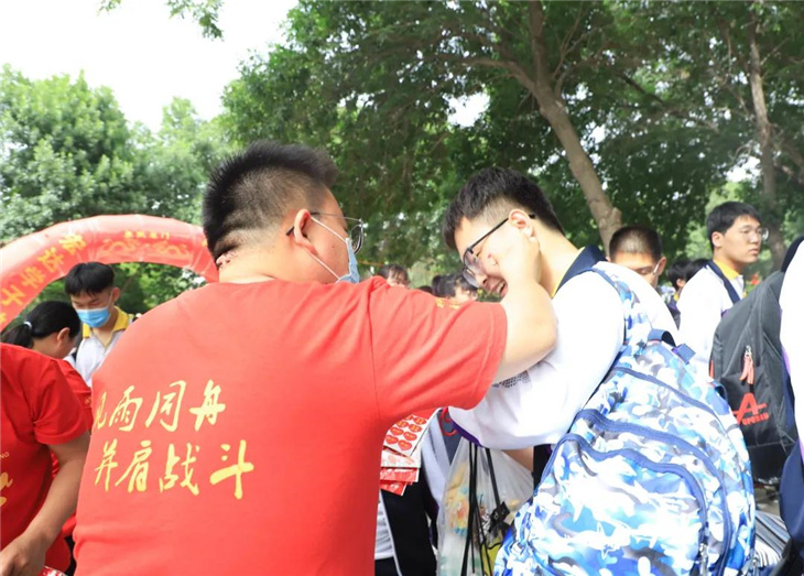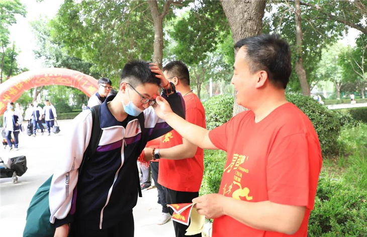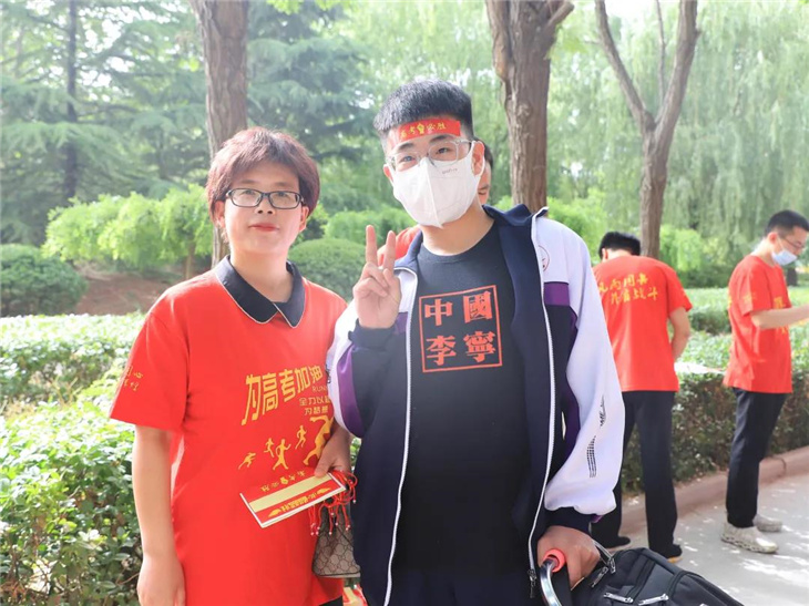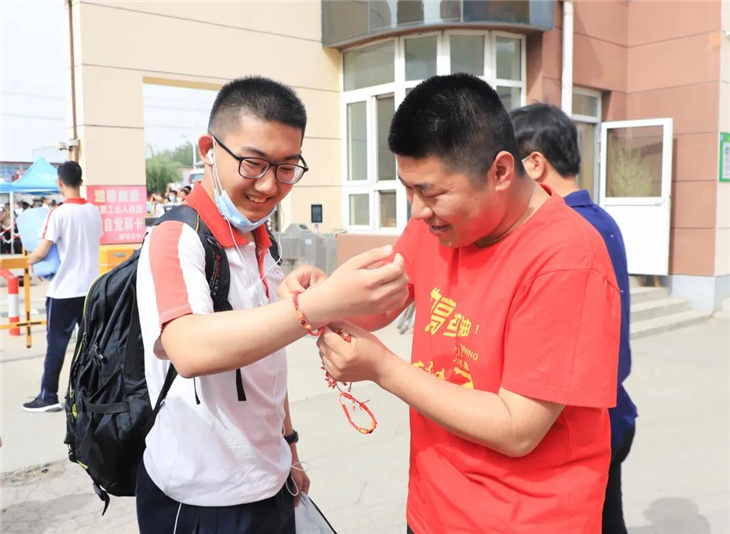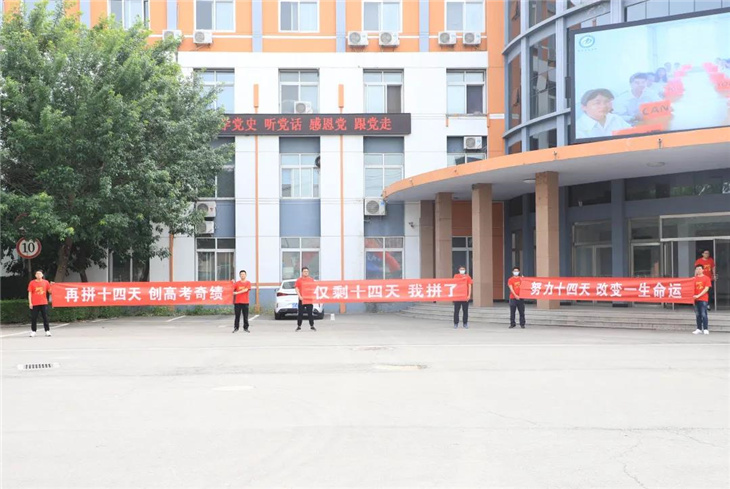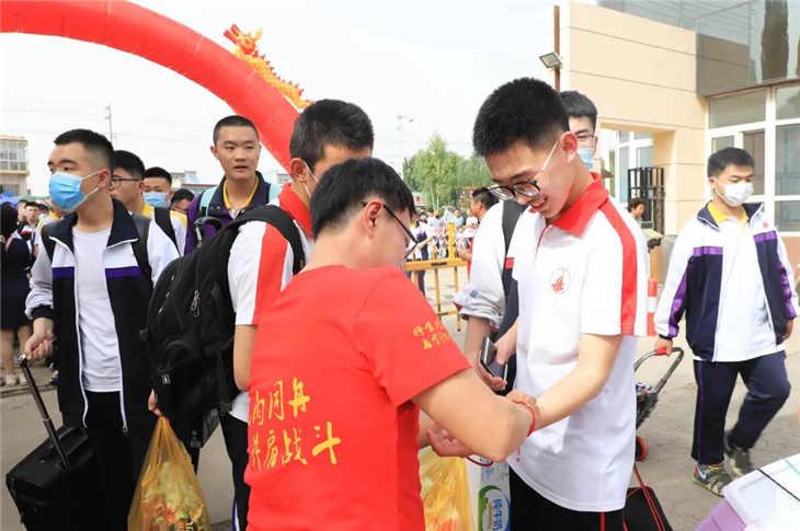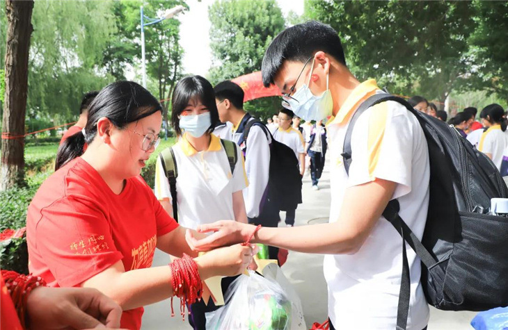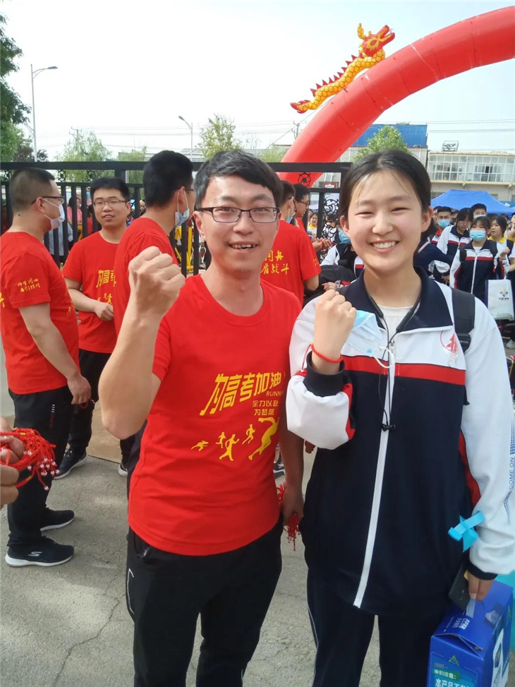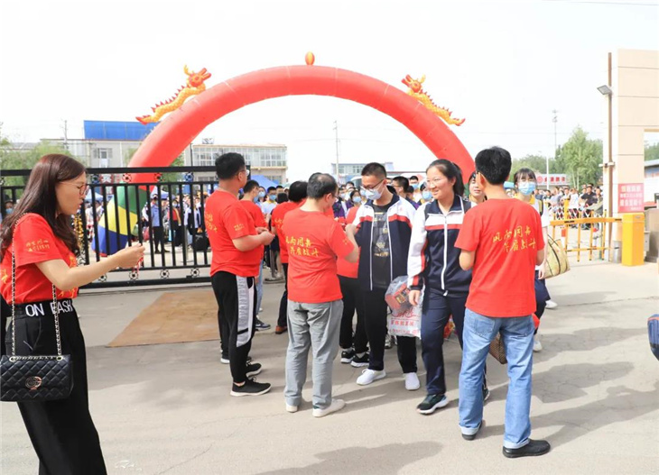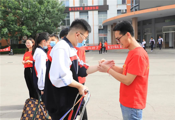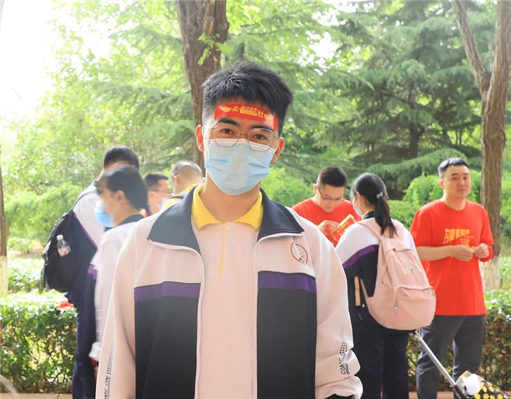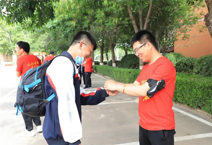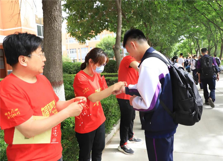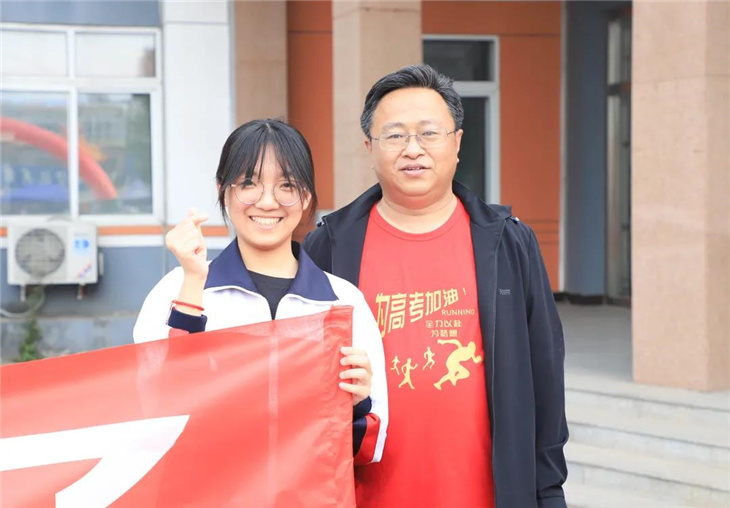 身穿红色袖,手拿红条幅,目之所望,愿你青春似火,高考开门红!