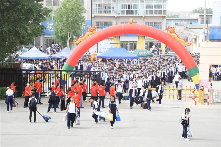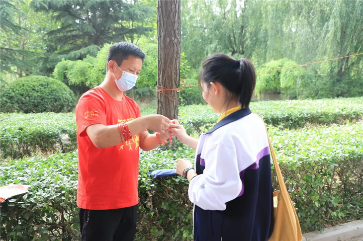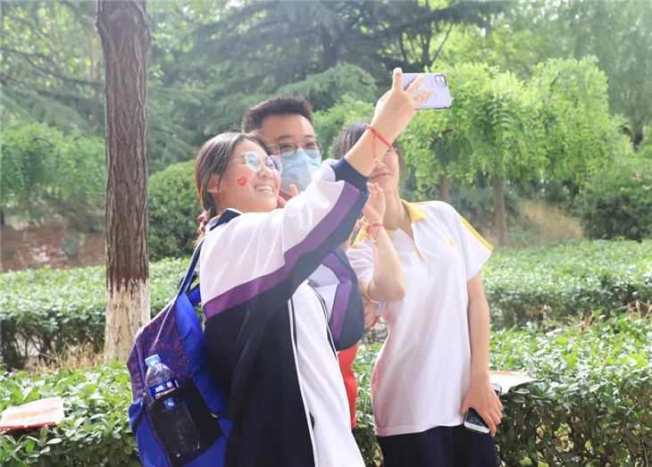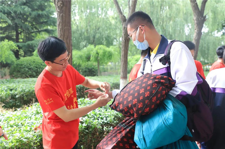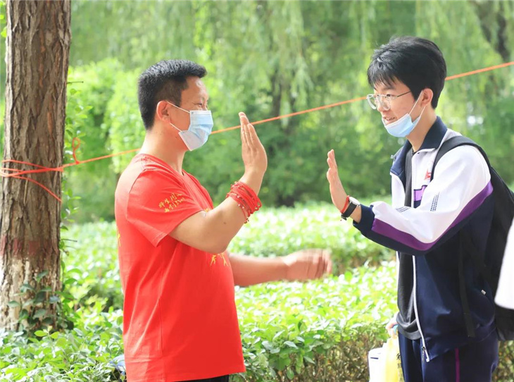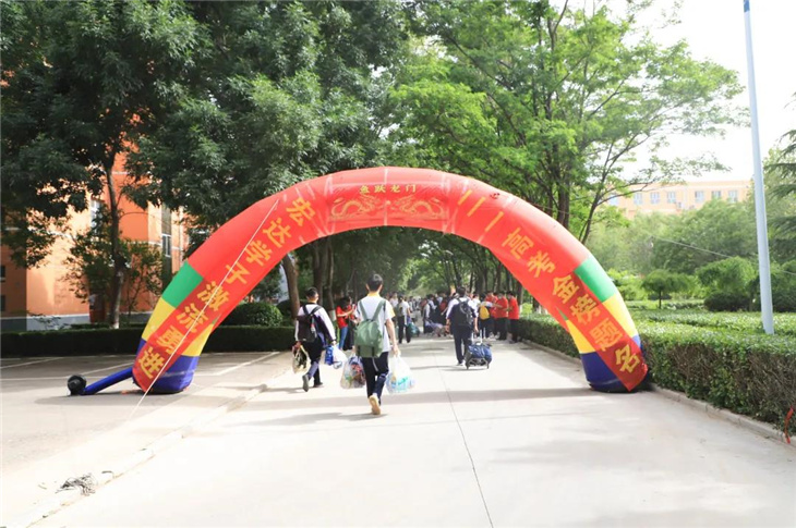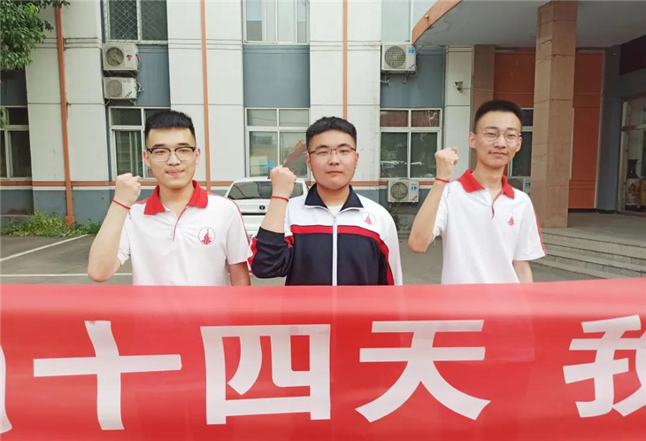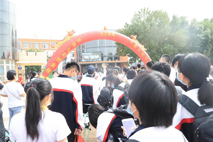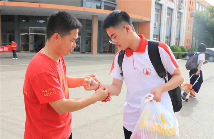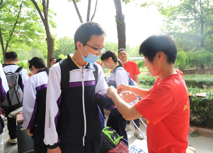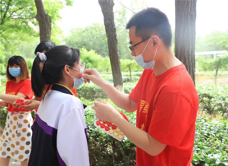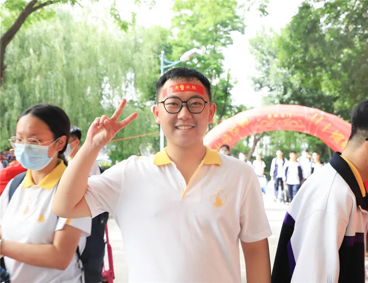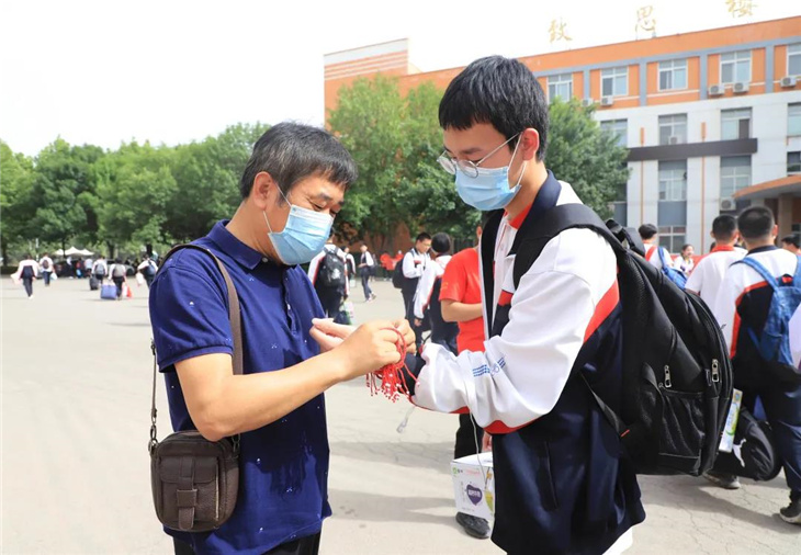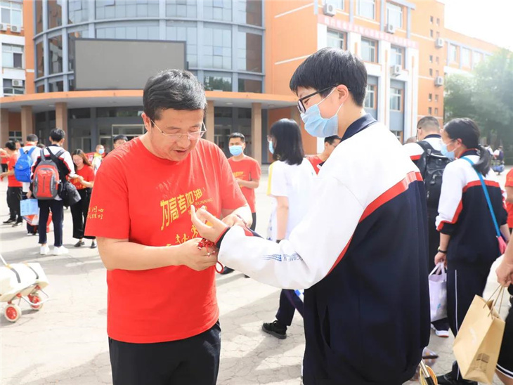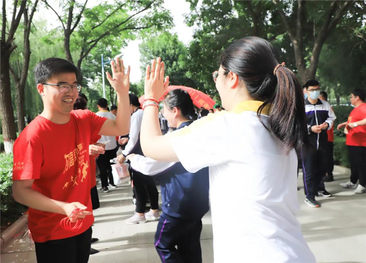 身穿红色袖,手拿红条幅,目之所望,愿你青春似火,高考开门红!