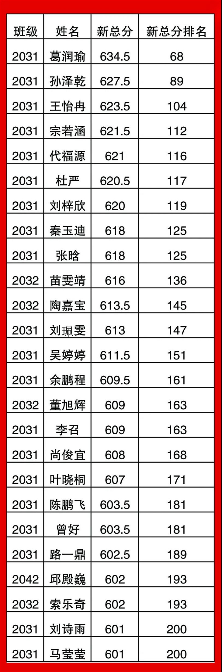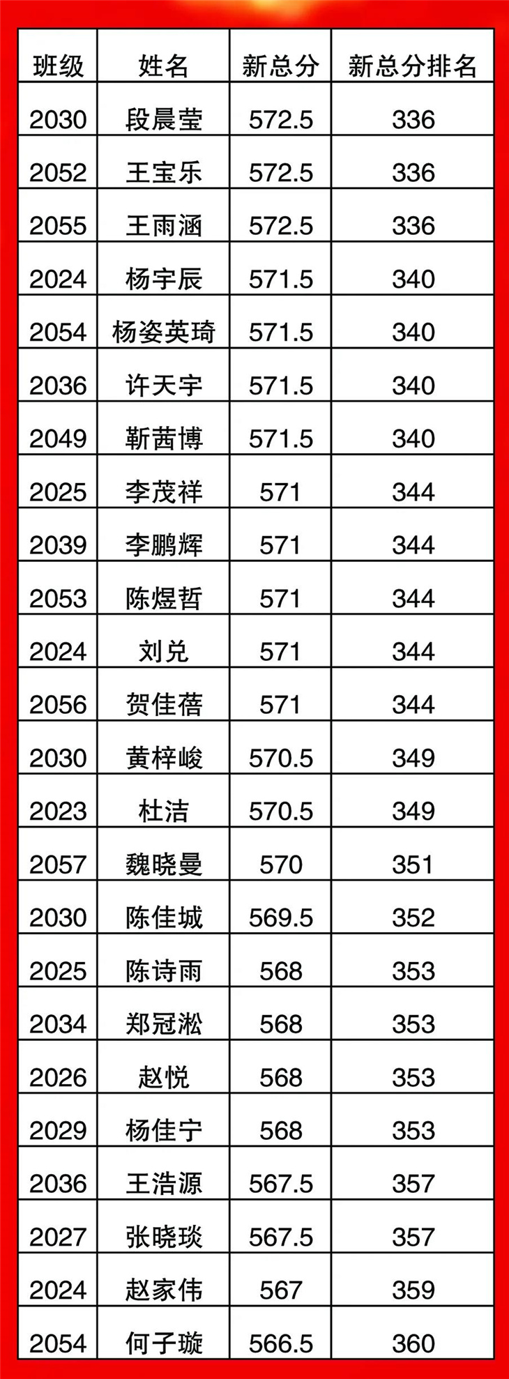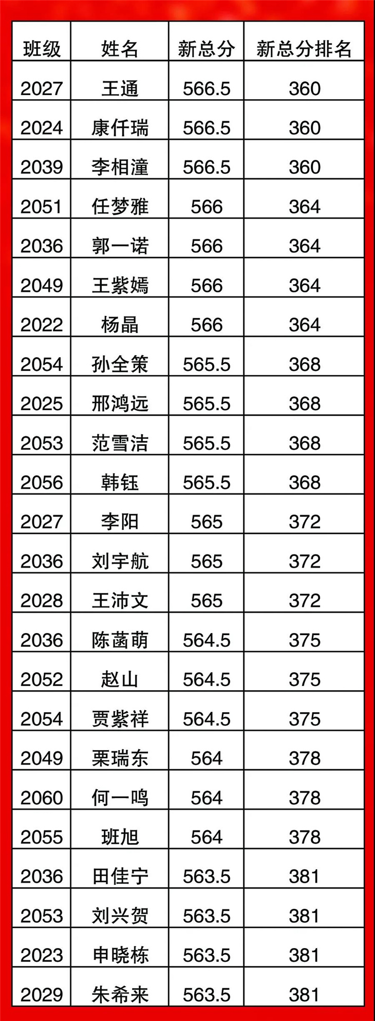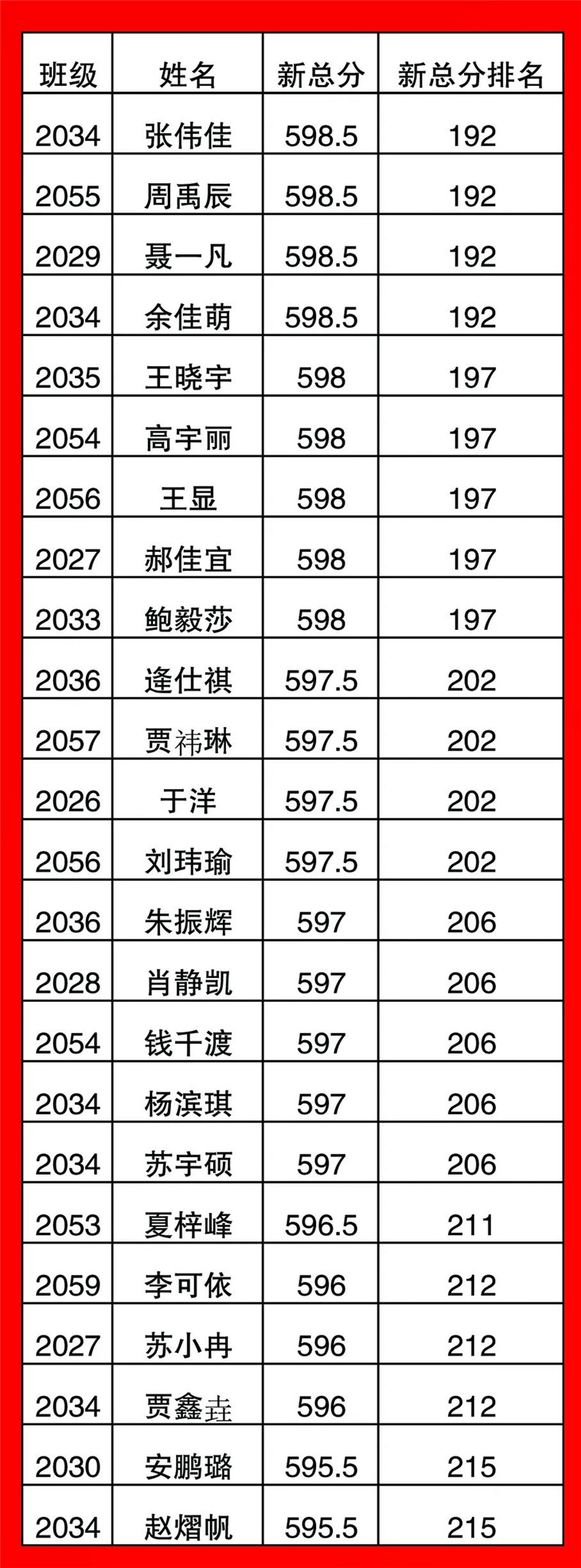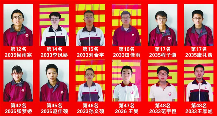 高一年级期中考试光荣榜
