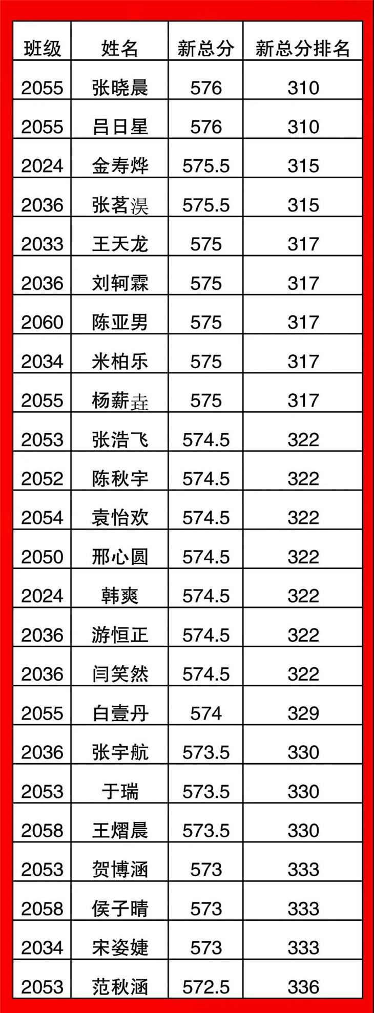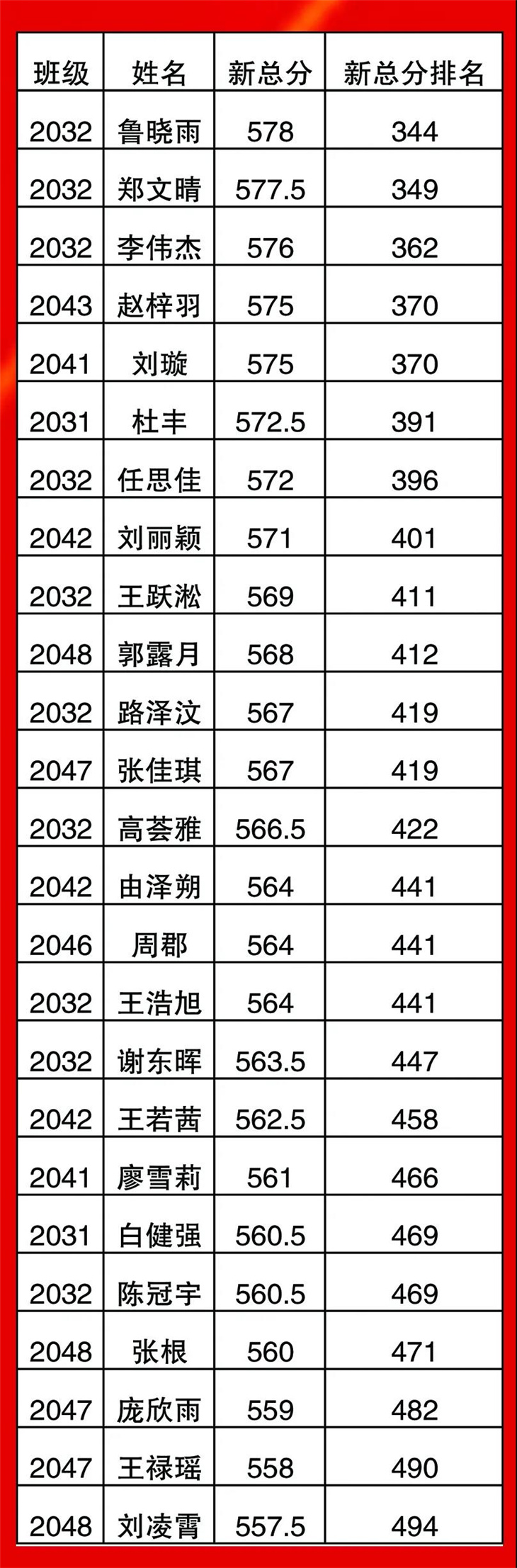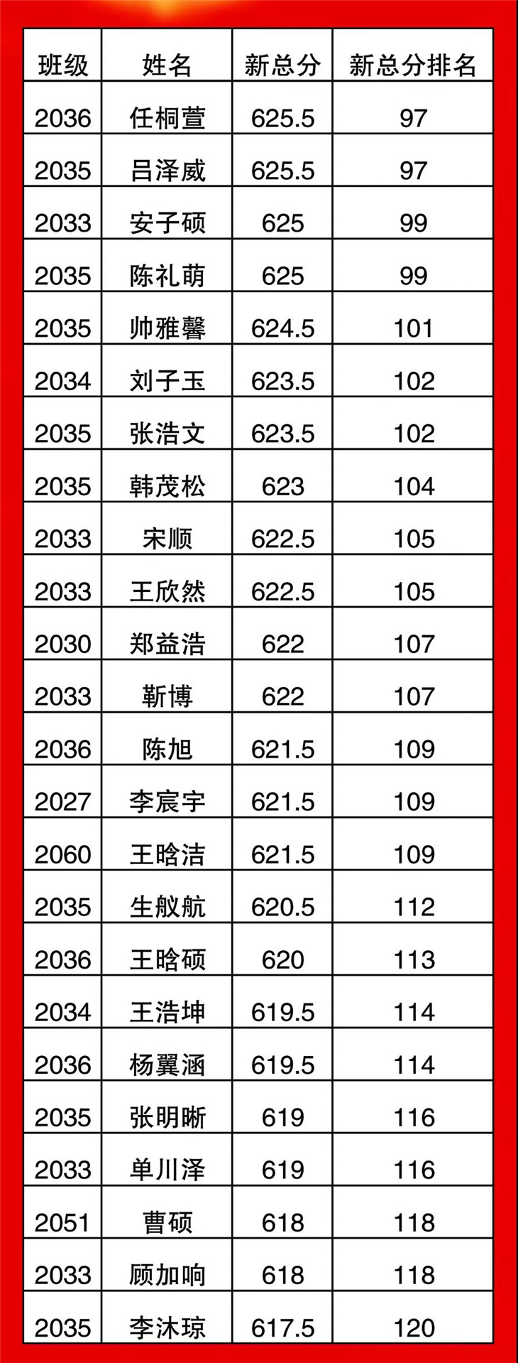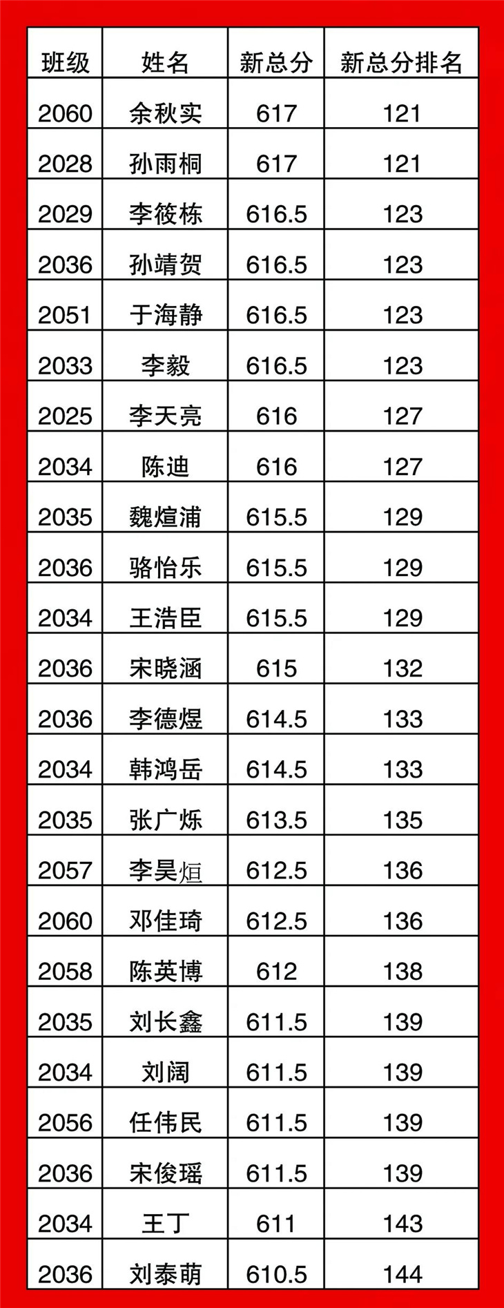 高一年级期中考试光荣榜
