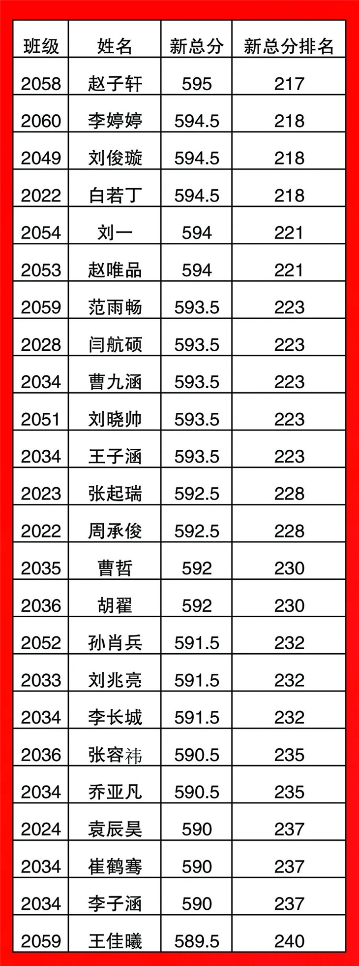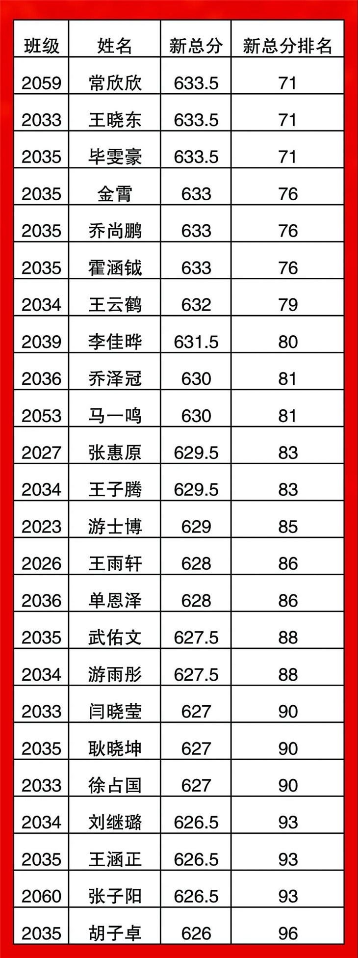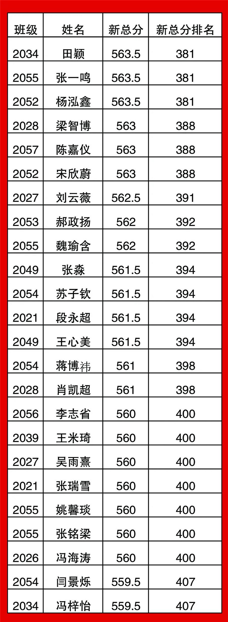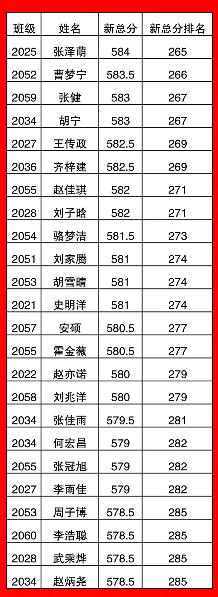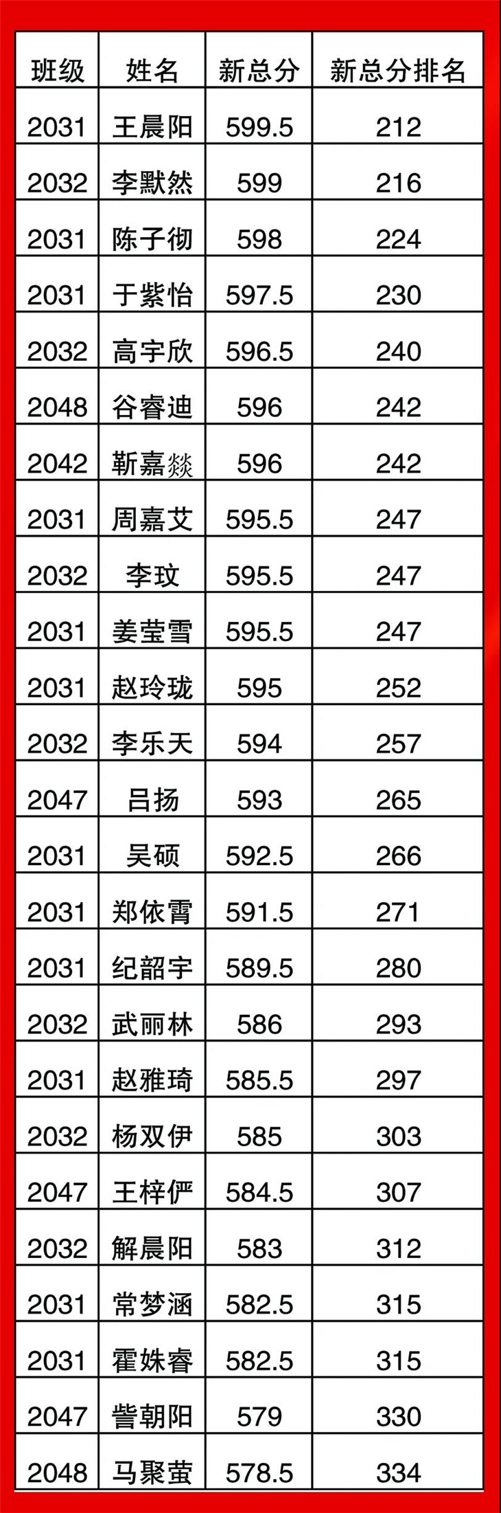 高一年级期中考试光荣榜