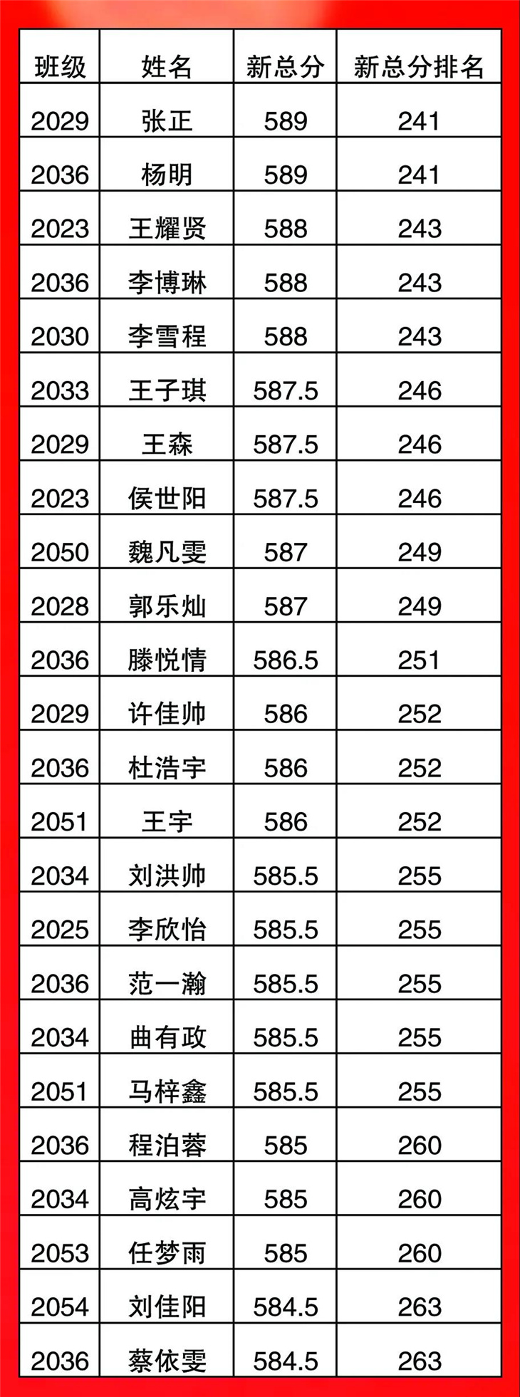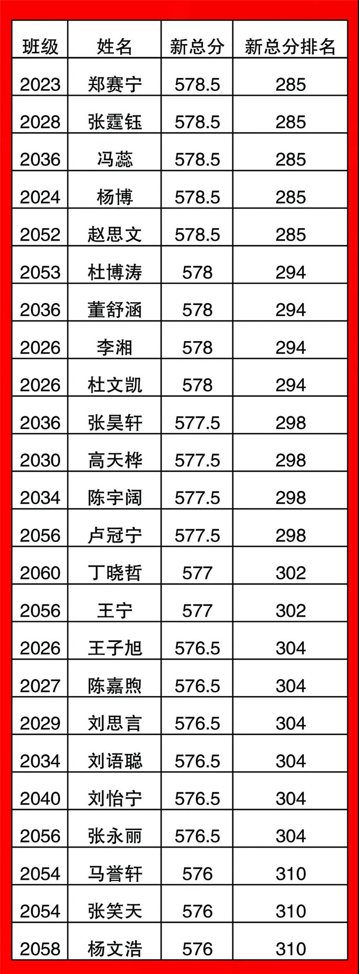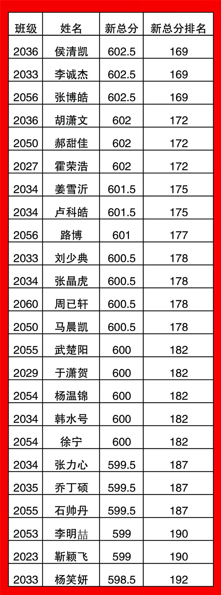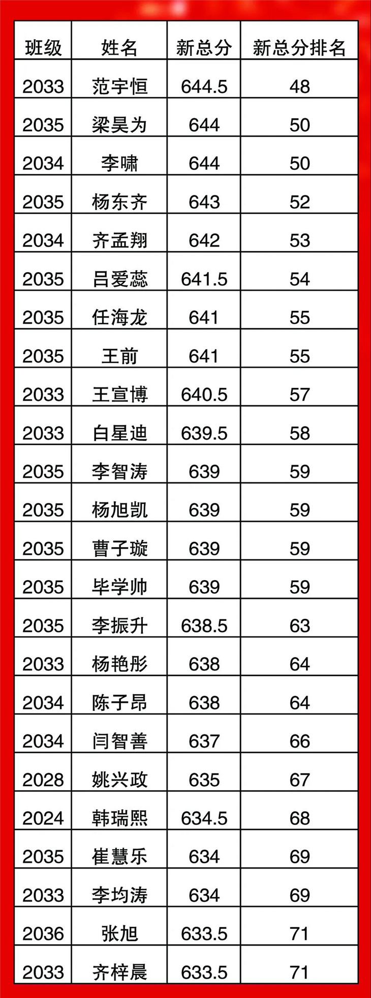 高一年级期中考试光荣榜