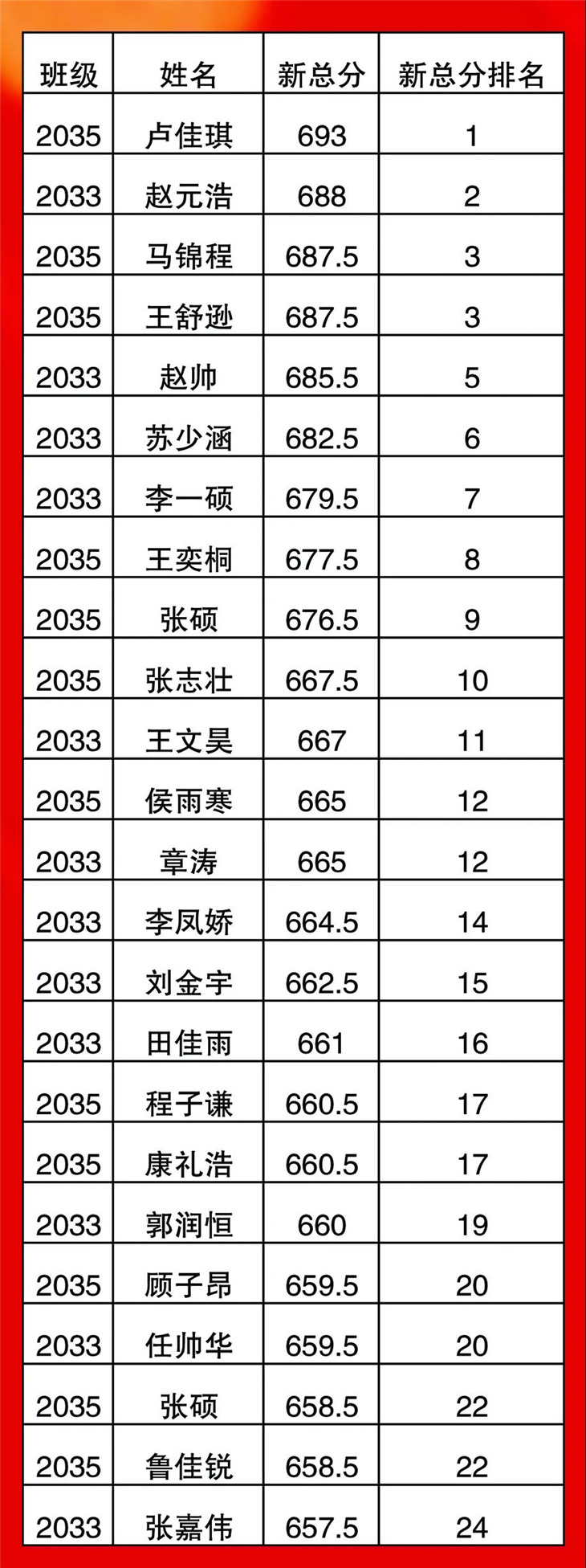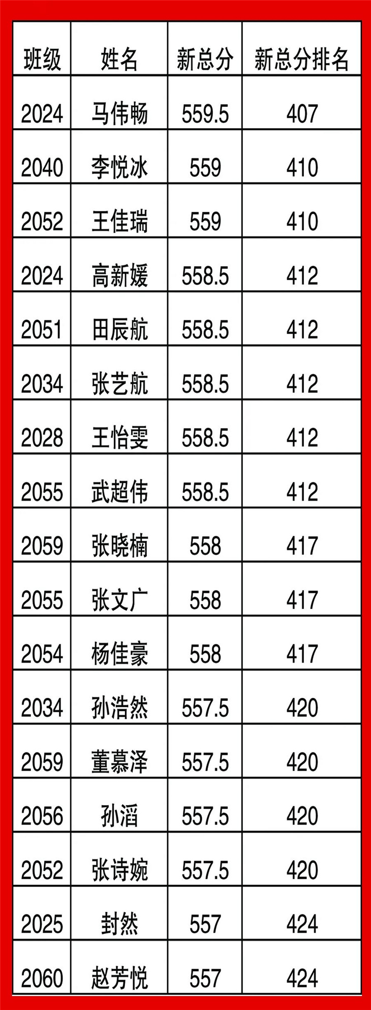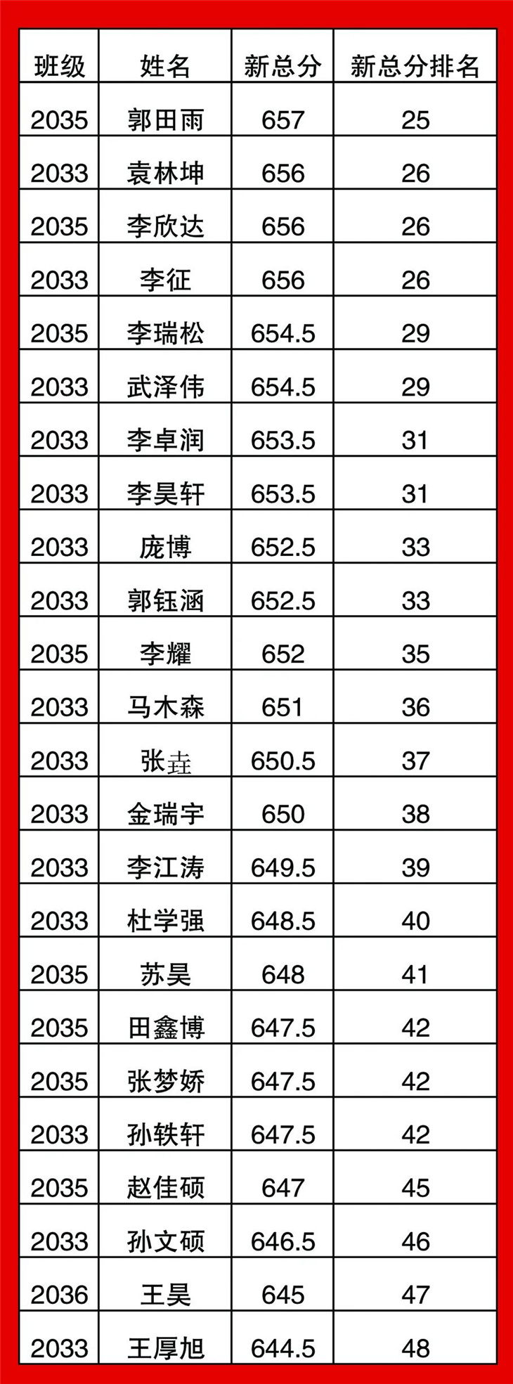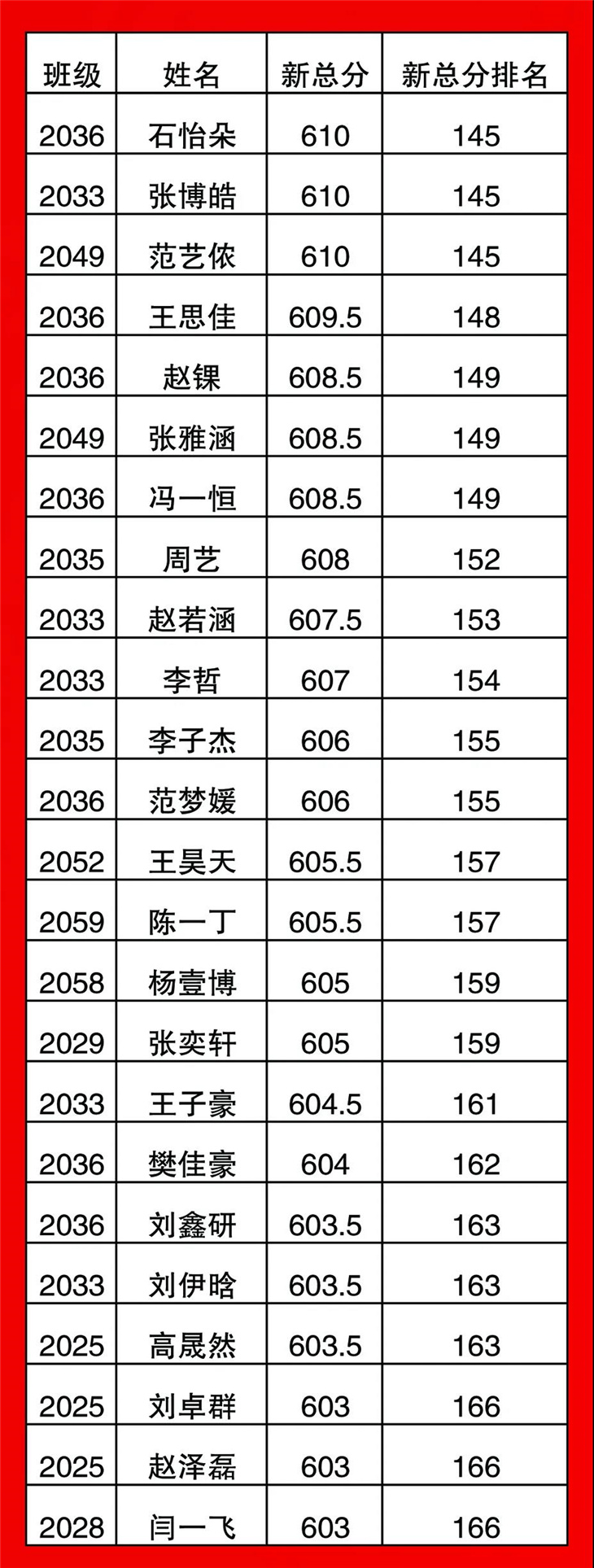 高一年级期中考试光荣榜