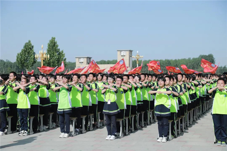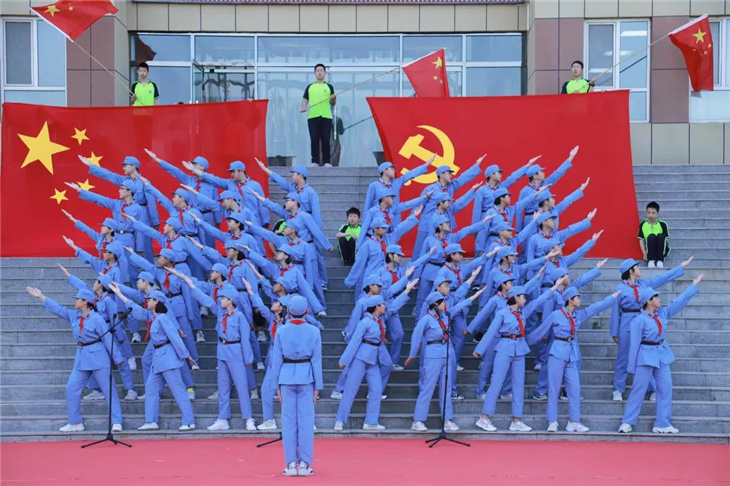 本次比赛由七、八年级学生和老师团队参赛,共八支参赛队伍,以级部为单位的形式展开,参赛方队的个性化的队形设计,整齐的校服,每个人的脸上满是蓬勃朝气,大家齐声歌唱,一首首红歌包含着一颗颗赤子之心。