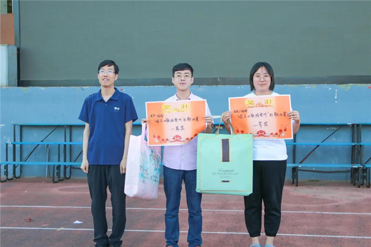 歌唱结束,由各获奖级部主任上台领奖,副校长金耀辉总结发言。