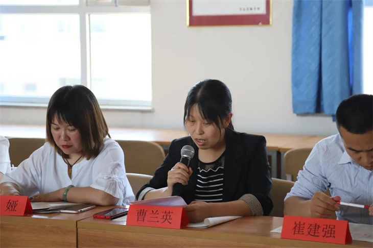 语文组长曹兰英对本次参加培训的新教师提出殷切的希望:“笔耕口耘三尺台,汗水浇出万世花”。希望在座的各位能够秉承学校的优良传统,敬业爱岗,以奉献的精神点燃事业的激情。
