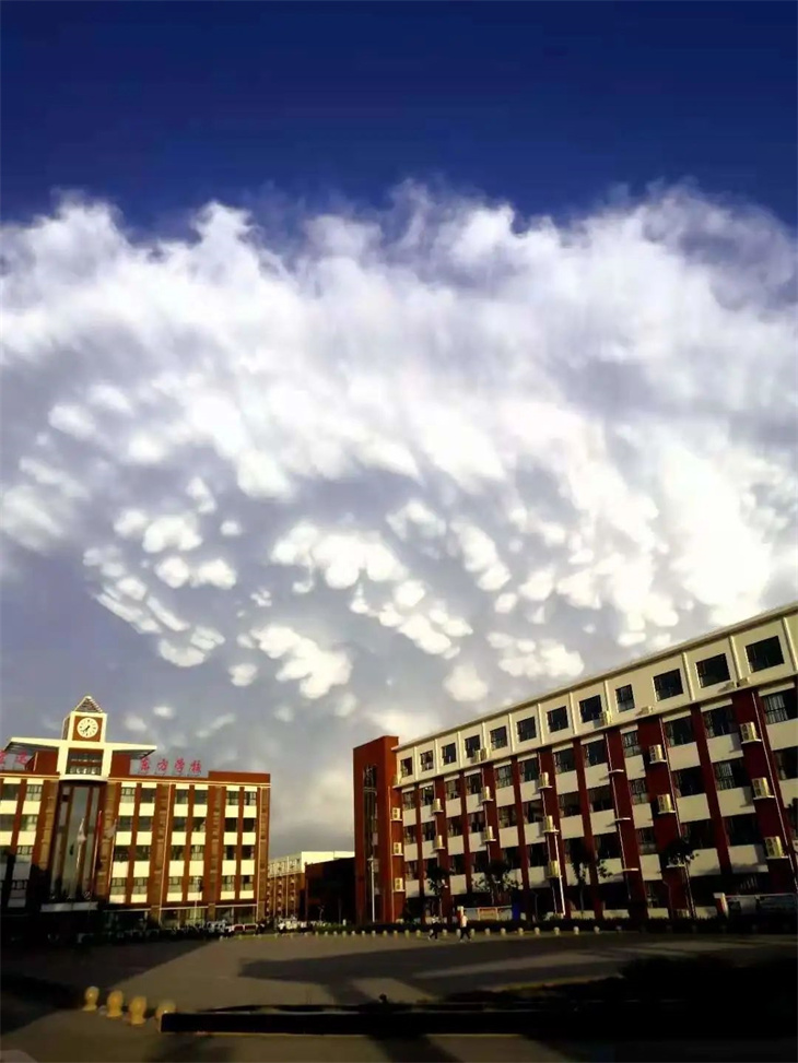 蓝天白云下的校园更加干净明朗,天蓝的如一汪湖水,那朵朵白云自由自在的在湖中游荡,好不自在。