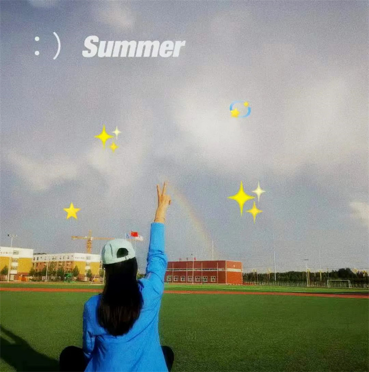 彩虹下,奔跑的少年,透露着年少的倔强和不服输的气韵。