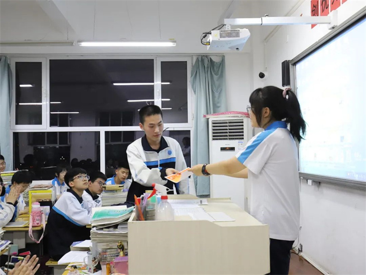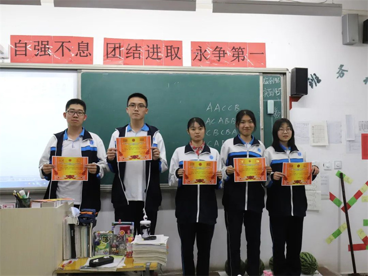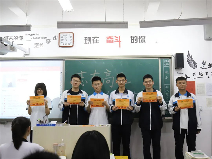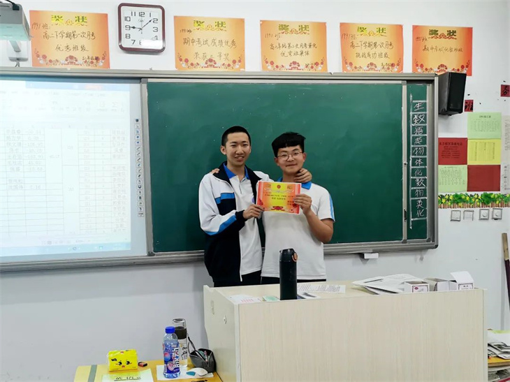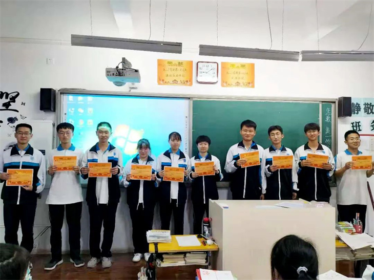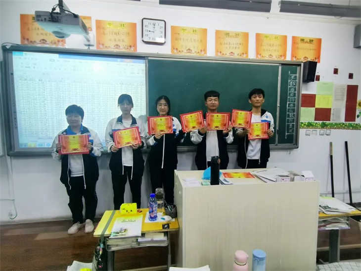 接下来,就是为此次月考中优秀同学和进步同学颁奖。当他们站上讲台手捧奖状那一刻,台下的同学们真诚的为之送上掌声,更是以他们为目标,为动力。