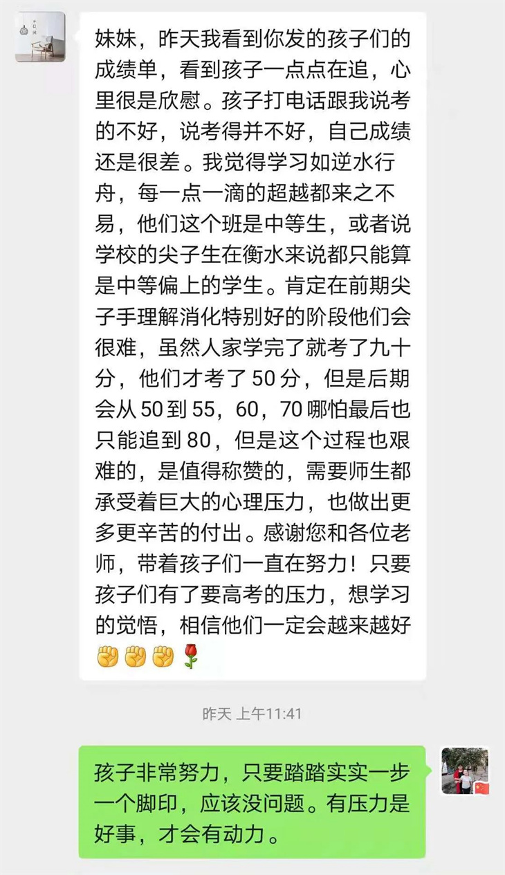 不放弃每一个学生,关爱每一个学生。每一个同学的进步都是老师们的骄傲,家长的骄傲。所以,老师都没有放弃你,爸妈都没有放弃你,你更要努力,努力将青春绽放,努力活出自己的风采,创造自己的奇迹。