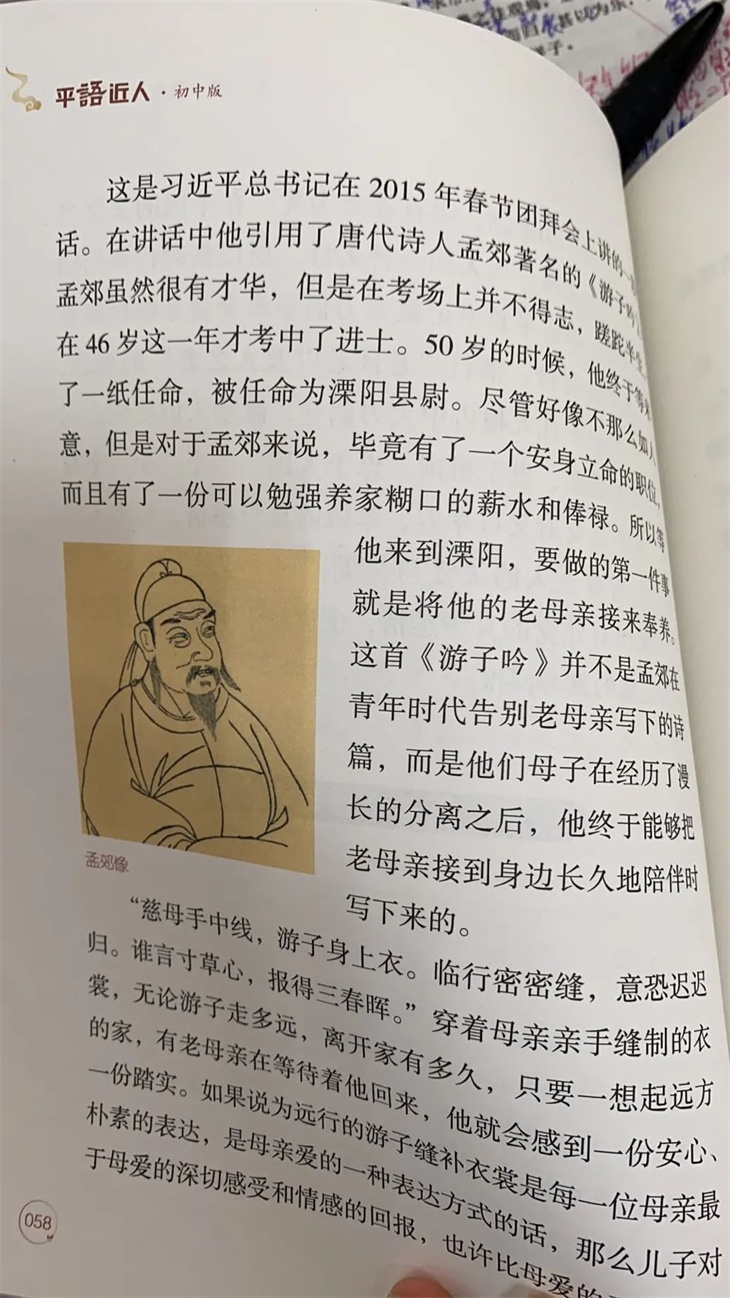 研读课本内容,结合自身经历,学习孟郊的孝道故事。