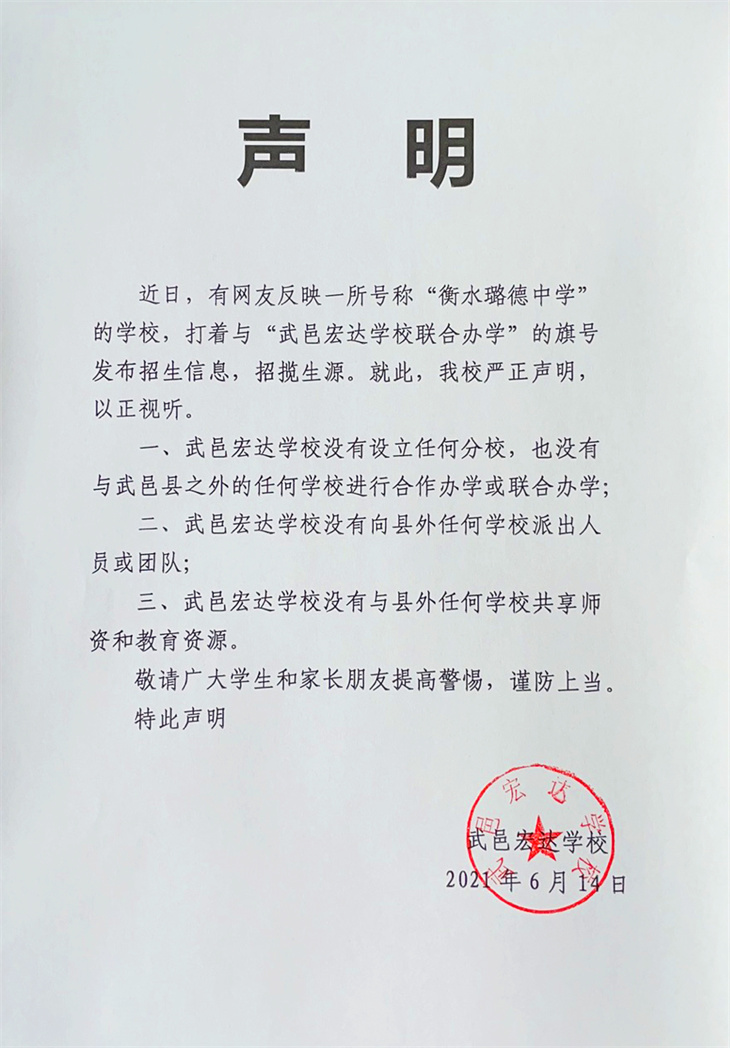 武邑宏达学校2021年央清美术班高水平特长生招生简章