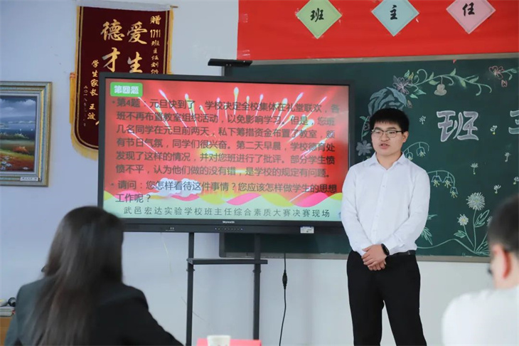 “情景答辩”环节,围绕问题学生、学生家长、班级管理与学校纪律等话题,班主任们根据具体情境进行了合理阐述,充分展示了我校班主任的语言能力、临场应变能力与逻辑思维能力。