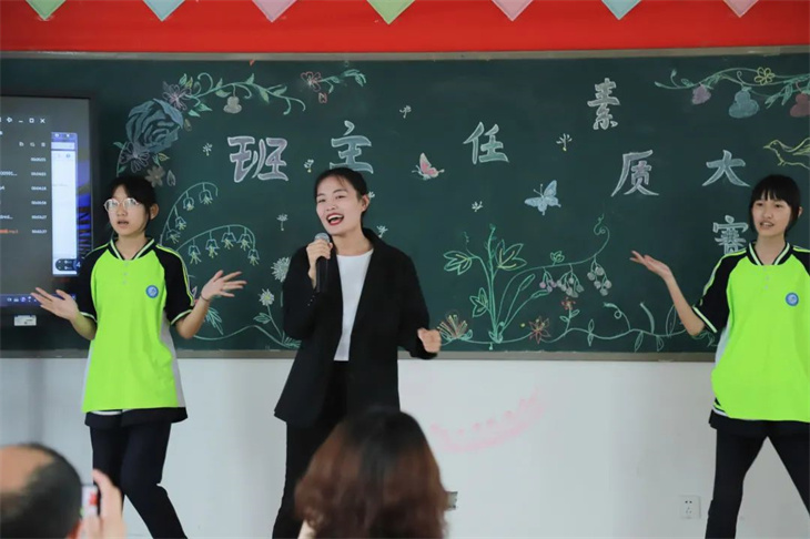 “才艺展示”环节,班主任更是各尽其能,通过倾情献唱、小品相声、诗歌朗诵等形式多样,展示了他们的才华,赢得了在场评委与老师的阵阵掌声。