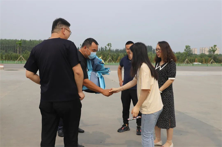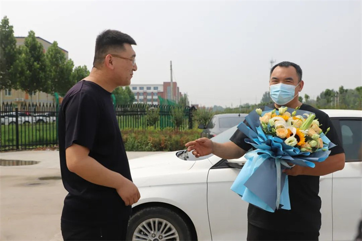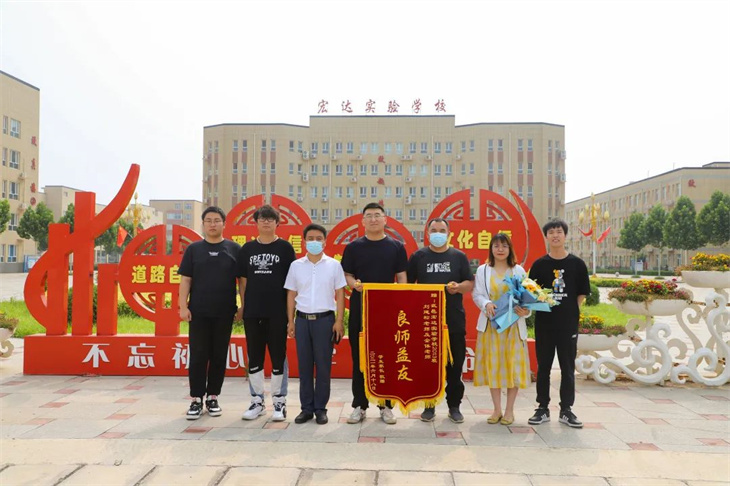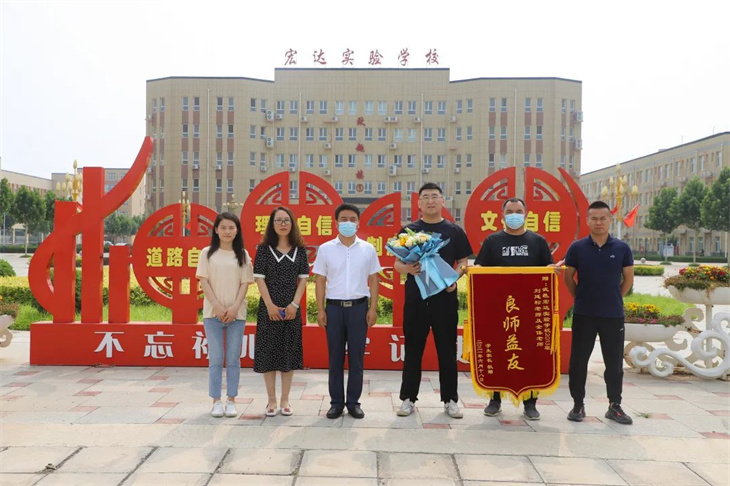 近日,2013班学生家长将一面绣有“良师益友”烫金字样的锦旗送到学校,以表达对2013班全体老师的感激之情,班主任刘延松及科任老师热情接待了家长朋友。