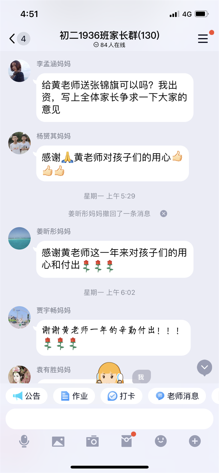 “孩子在学校得到了班主任黄思奇老师的悉心培育,一天天的进步,一天天的成长,我看在眼里,感激万分。孩子点点滴滴的成长都凝聚着老师们无私奉献的心血。把孩子送到黄老师这里,作为学生家长,我很放心,也很荣幸。对学校老师的事业心和责任感表示由衷的感谢!”家长感激地说。