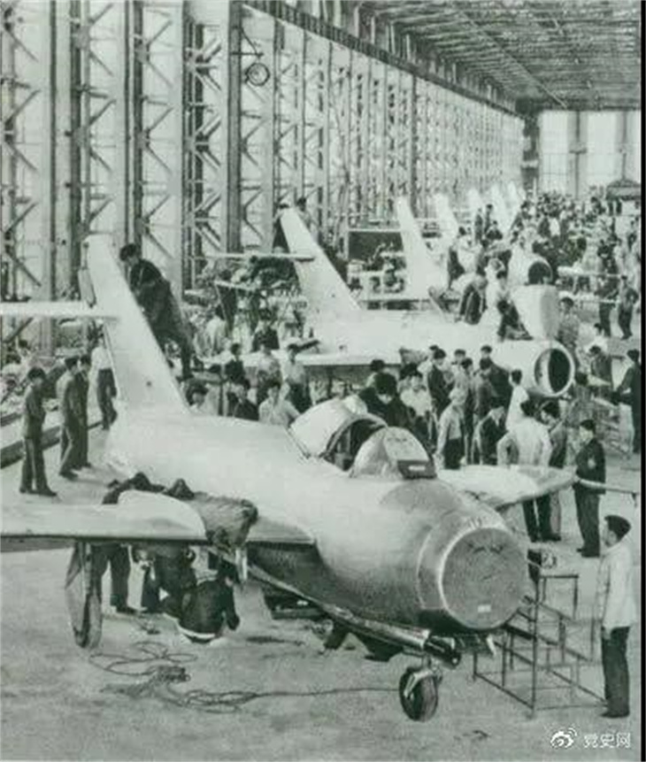 1956年7月19日,国产第一架喷气式战斗机在沈阳首次试飞成功,标志着中国具备了独立研制空军武器装备的能力。图为国产第一批喷气式飞机即将出厂。