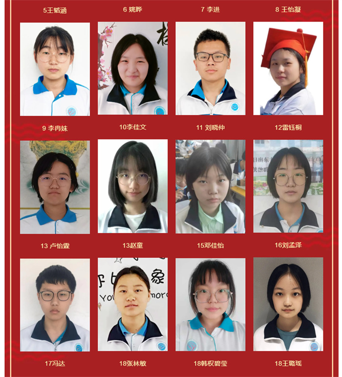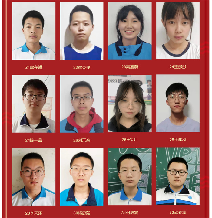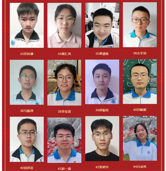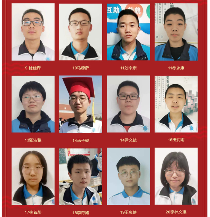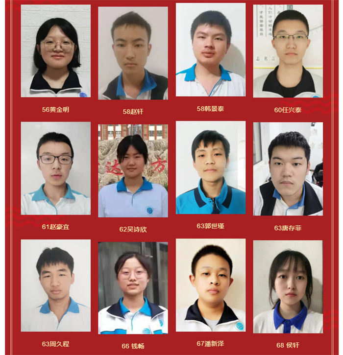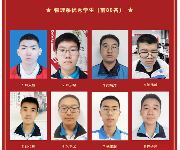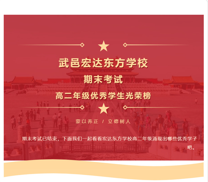 高二年级期末考试优秀学生光荣榜