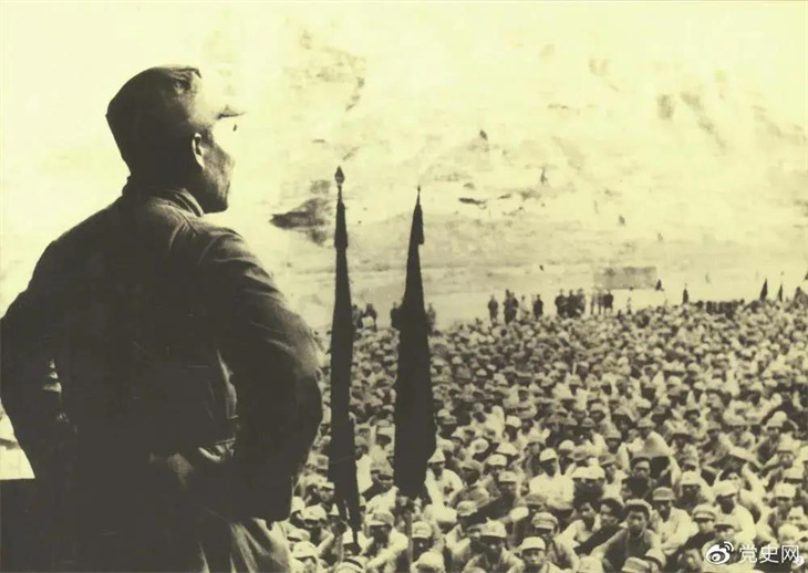1937年8月后,朱德任中共中央军委副主席、中央军委华北军分会书记、国民革命军第八路军总指挥(后为第十八集团军总司令),指挥八路军开赴华北抗日前线。图为朱德对即将开赴前线的八路军将士讲话。