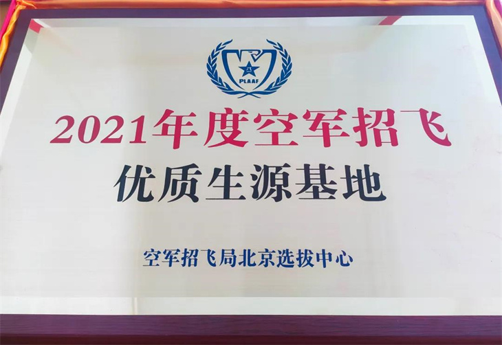 空军招飞局授予我校“空军招飞优质生源基地”称号,是对我校工作的肯定,也是我校全力践行立德树人根本任务的结果,激励我校进一步开展创新工作,为国家的蓝天国防事业输送更多优秀人才。