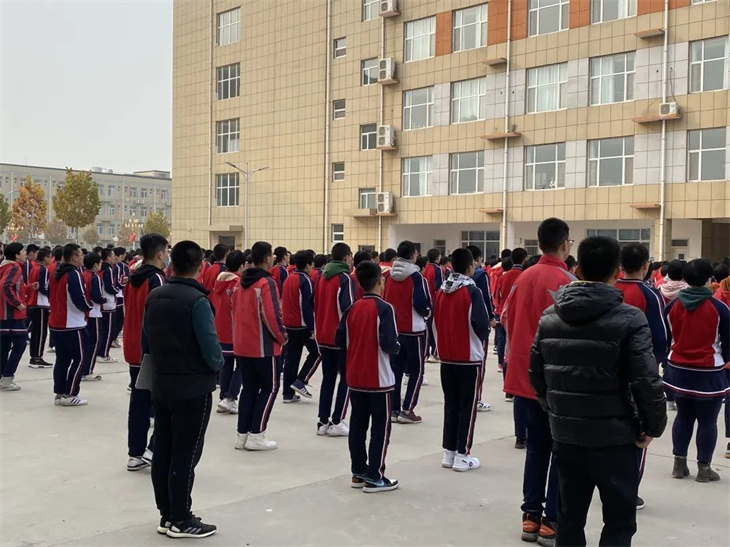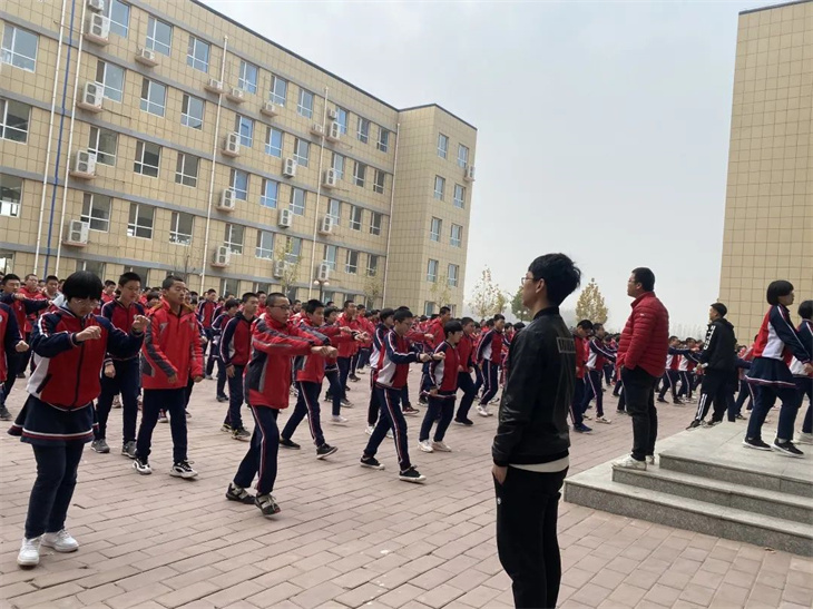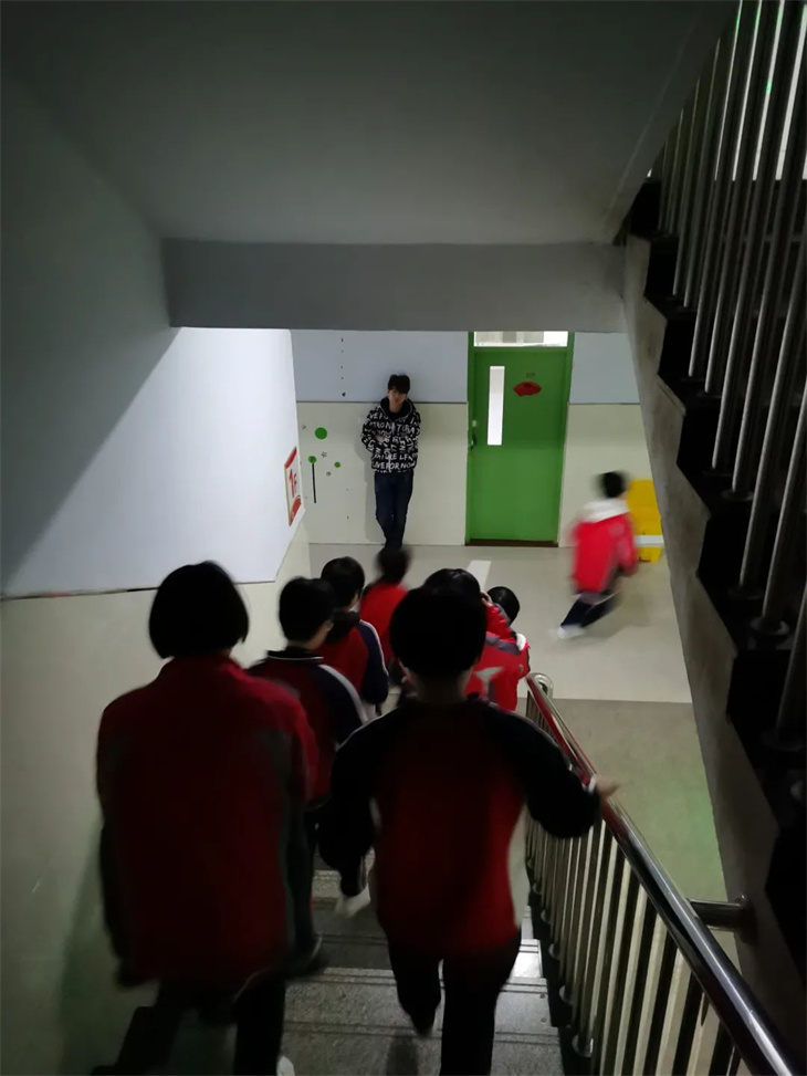 9:45,大课间,韵律操时间,班主任们到达班级指定位置等候学生们到来,监督做操情况,让学生们认真锻炼身体。