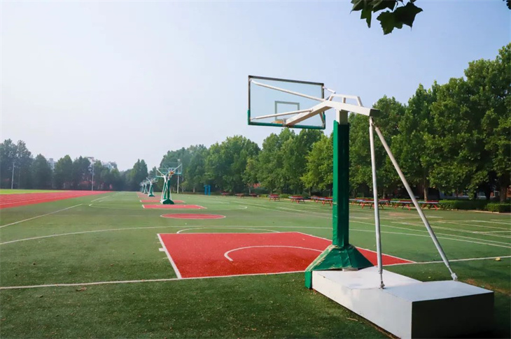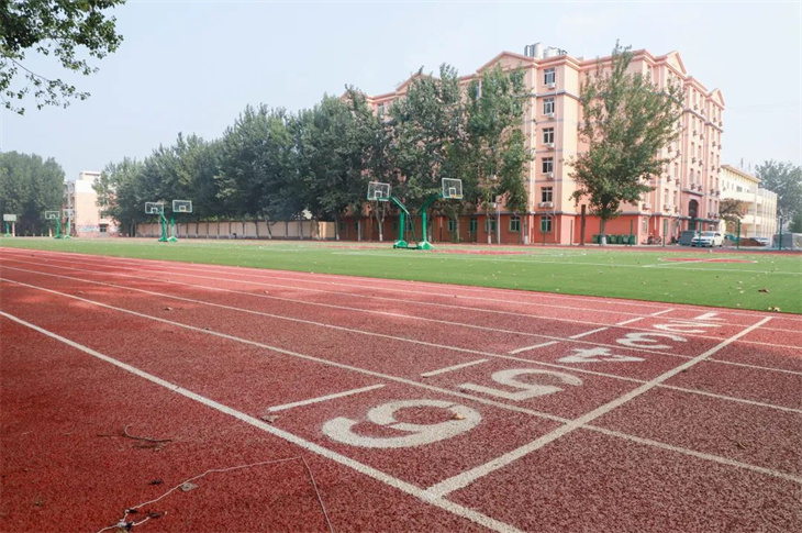 宽广的北操场,没有一点儿垃圾。新修的操场塑胶地面,规整的跑道,玻璃钢篮球架,乒乓案以及四周花池内的花草树木,给校园增添了色彩。