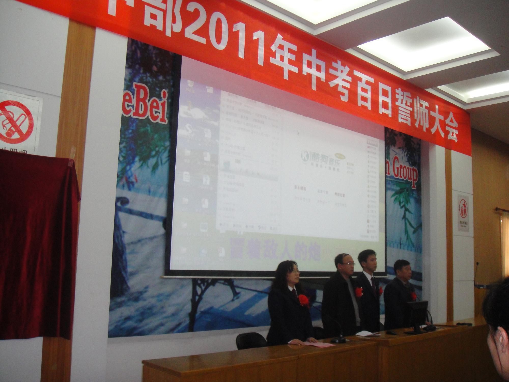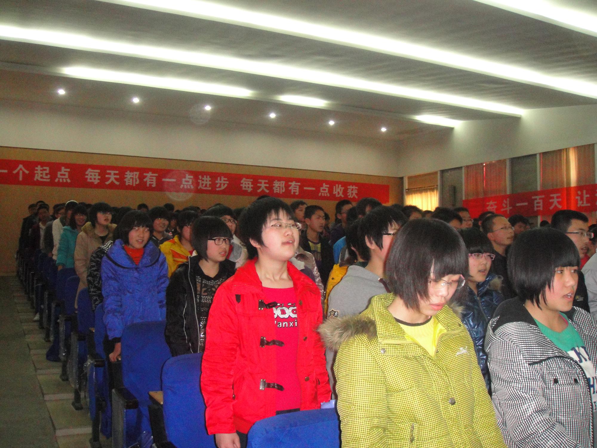 百日誓师大会在全体与会人员雄壮的国歌声中拉开序幕,接着全体初三学生高唱校歌《托起明天的太阳》,充分表达了学子们砺志求索,为母校争光的强烈愿望。