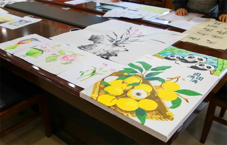 老师们各显神通,有的丁真楷草,写出一手工整大气的书法,有的笔走龙蛇,画出一幅栩栩如生的美丽图画。丹青夺目,妙笔生花!